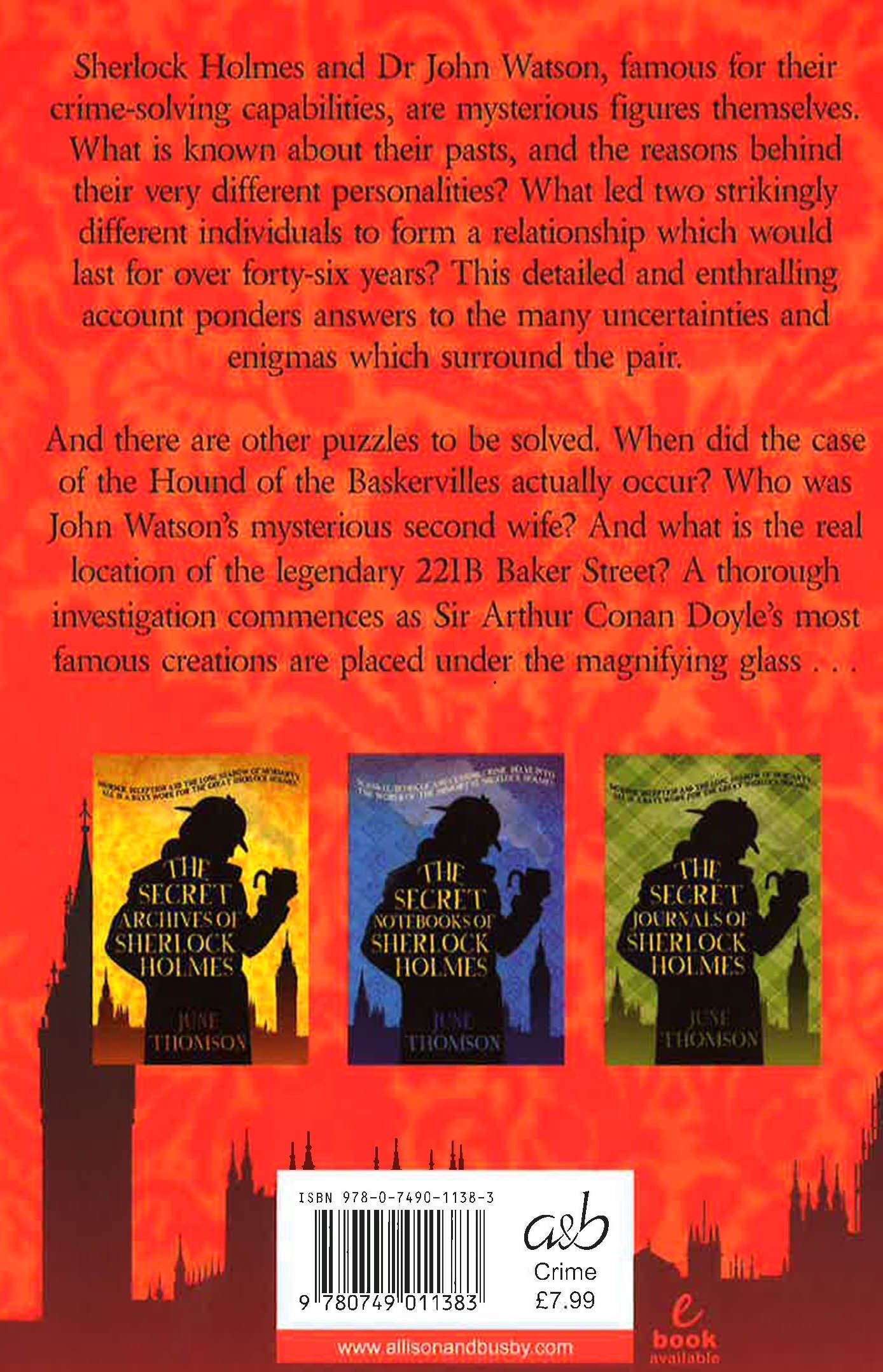 TWO IMMORTAL CHARACTERS, A CHANCE MEETING, A VISIT TO 221B BAKER STREET. THE BEGINNINGS OF THE MOST FAMOUS FRIENDSHIP EVER RECORDED. Sherlock Holmes and Dr John Watson, famous for their crime-solving capabilities, are mysterious figures themselves. What is known about their pasts, and the reasons behind their very different personalities? What led two strikingly different individuals to form a relationship which would last for over forty-six years? This detailed and enthralling account ponders answers to the many uncertainties and enigmas which surround the pair. And there are other puzzles to be solved. When did the case of the Hound of the Baskervilles actually occur? Who was John Watson's mysterious second wife? And what is the real location of the legendary 221B Baker Street? A thorough investigation commences as Sir Arthur Conan Doyle's most famous creations are placed under the magnifying glass . . .