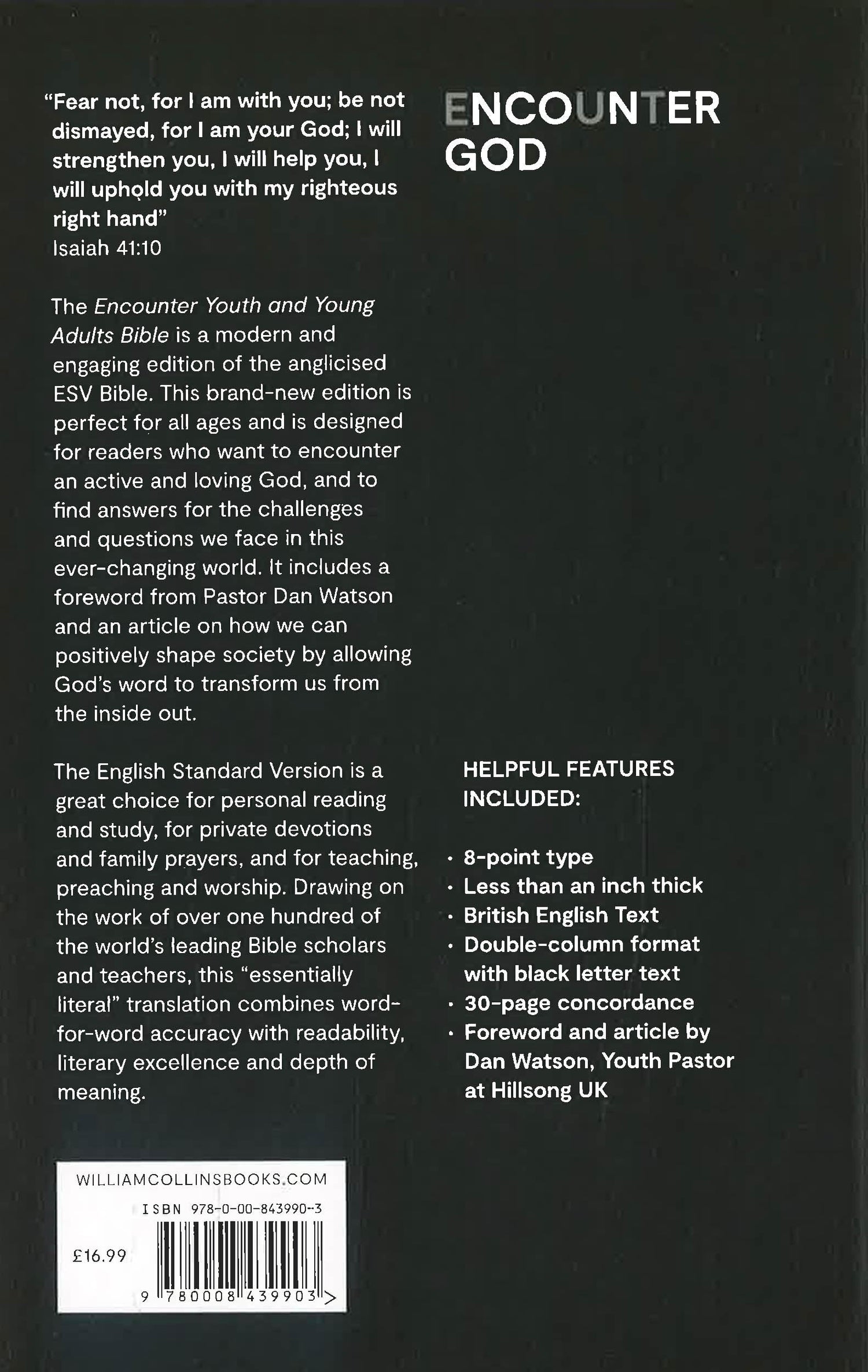 It is less than an inch thick, but it still contains a concordance and the complete text of the ESV Bible in a highly readable font size. This edition comes complete with anglicized text and its many helpful features include: