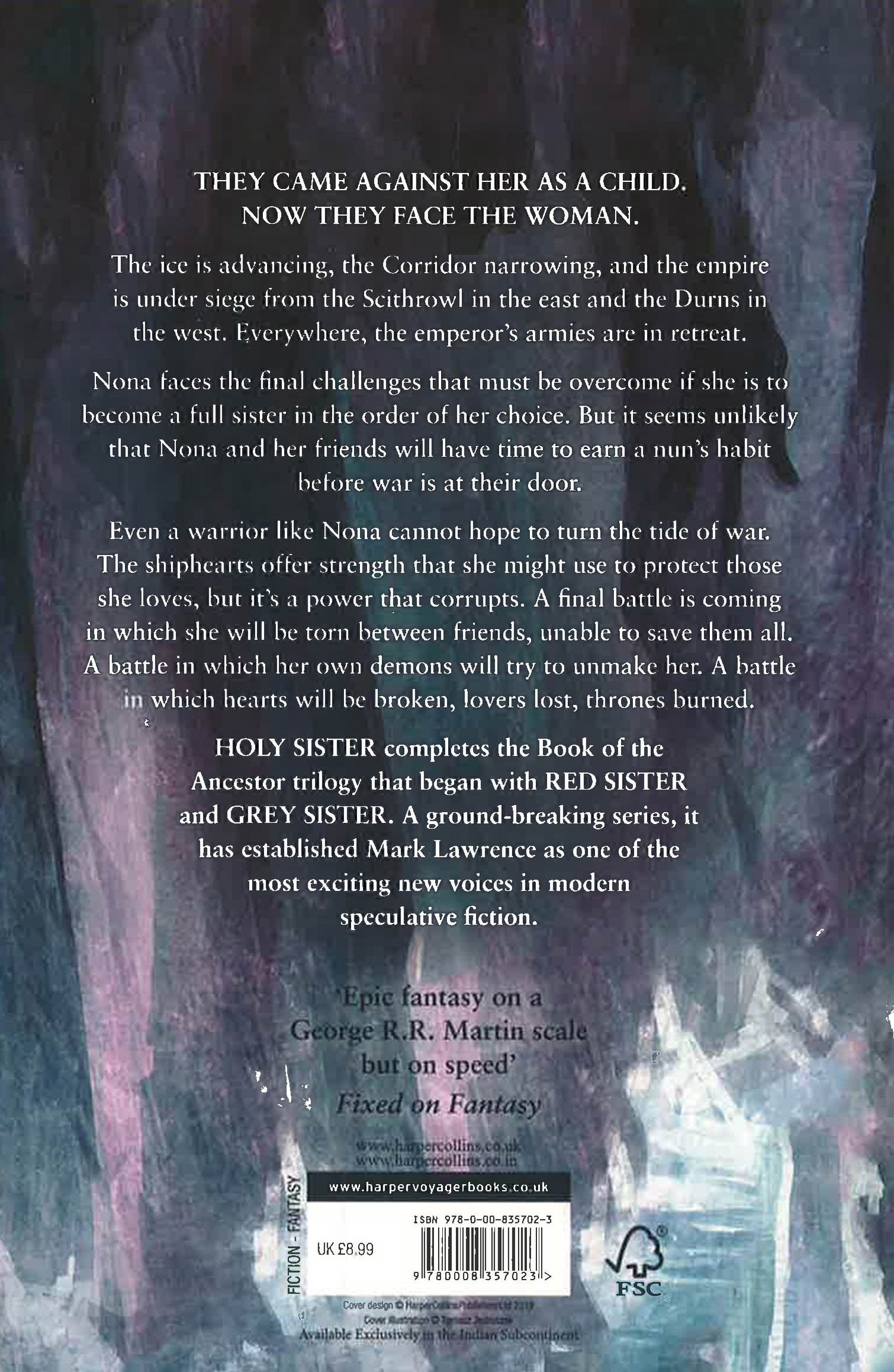 HOLY SISTER completes the Book of the Ancestor trilogy that began with RED SISTER and GREY SISTER. A ground-breaking series, it has established Mark Lawrence as one of the most exciting new voices in modern speculative fiction.