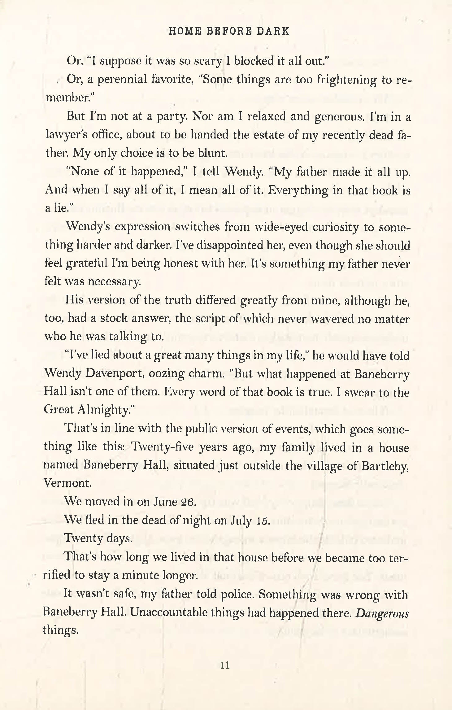 As the days pass, Maggie begins to believe that what her father wrote was more fact than fiction. That, either way, someone - or something - doesn't want her here. And that she might be in danger all over again . . .
