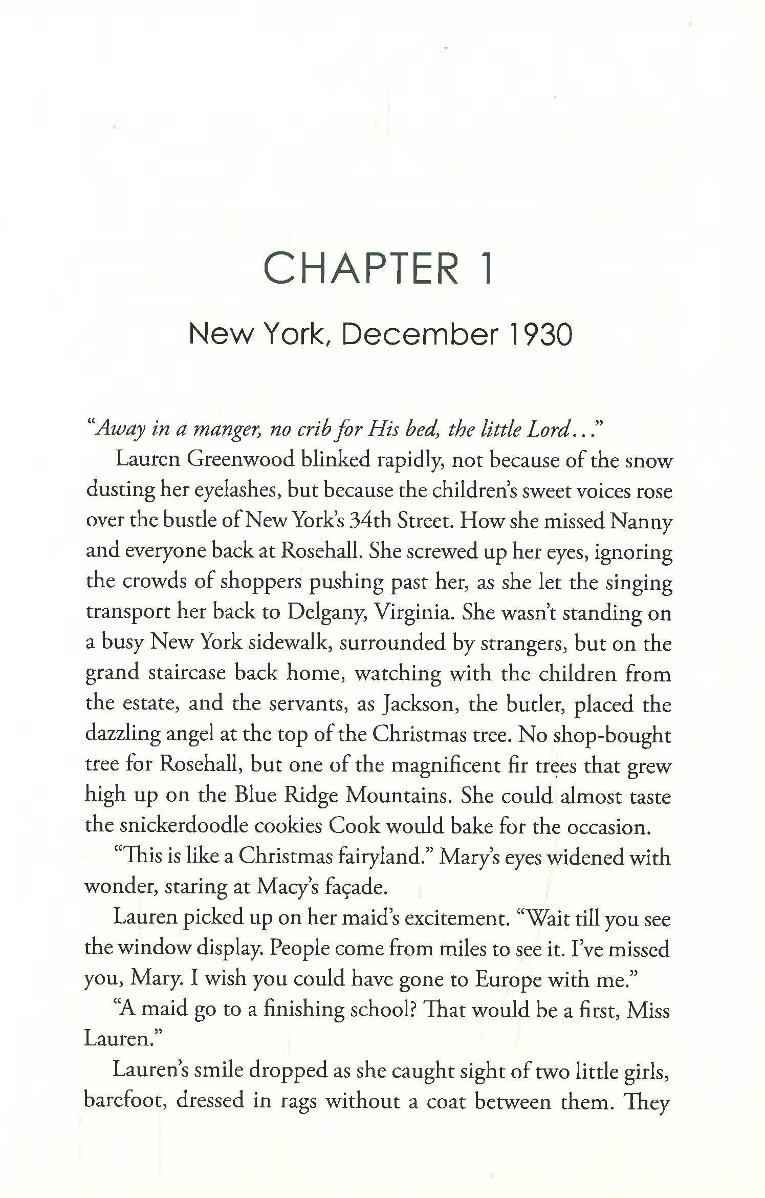 Never in a million years did Lauren Greenwood think she would be destitute and without a penny to her name. But when her father mercilessly disowns her in the depths of winter, that is her fate. Now homeless, Lauren finds America in the devastating grip of the Great Depression––children run wild in the icy streets, endless queues for soup kitchens line frosty sidewalks, and desperation hangs in the air.