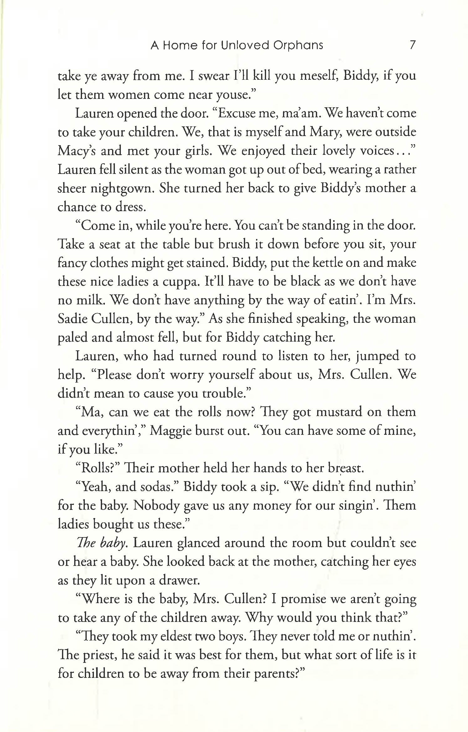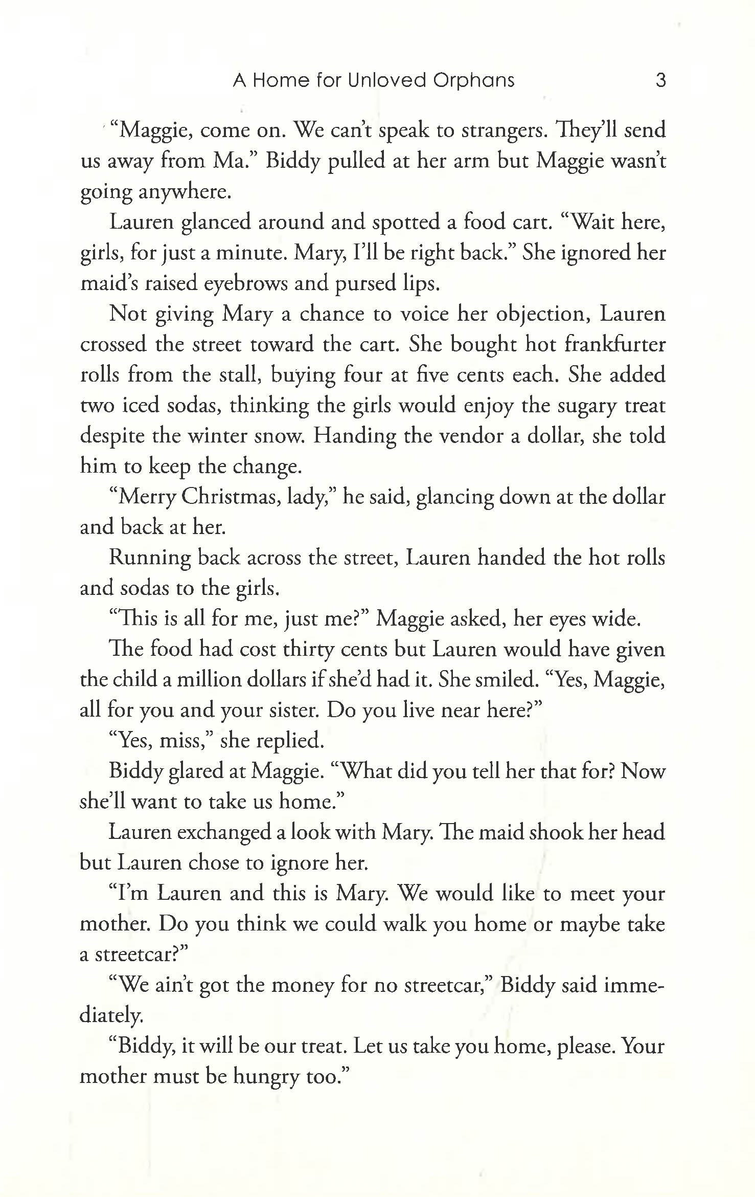 All alone in the world, Lauren finds an orphanage in the sprawling fields of the Virginia countryside, surrounded by snow-topped mountains and magnificent fir trees––a safe haven for those who have nowhere to go. But she is appalled to find children living in shocking conditions, huddled together for warmth, their hunger keeping them awake at night as the temperature plunges. The home for unloved orphans is on the brink of closure and the helpless innocents may lose the roof over their heads…