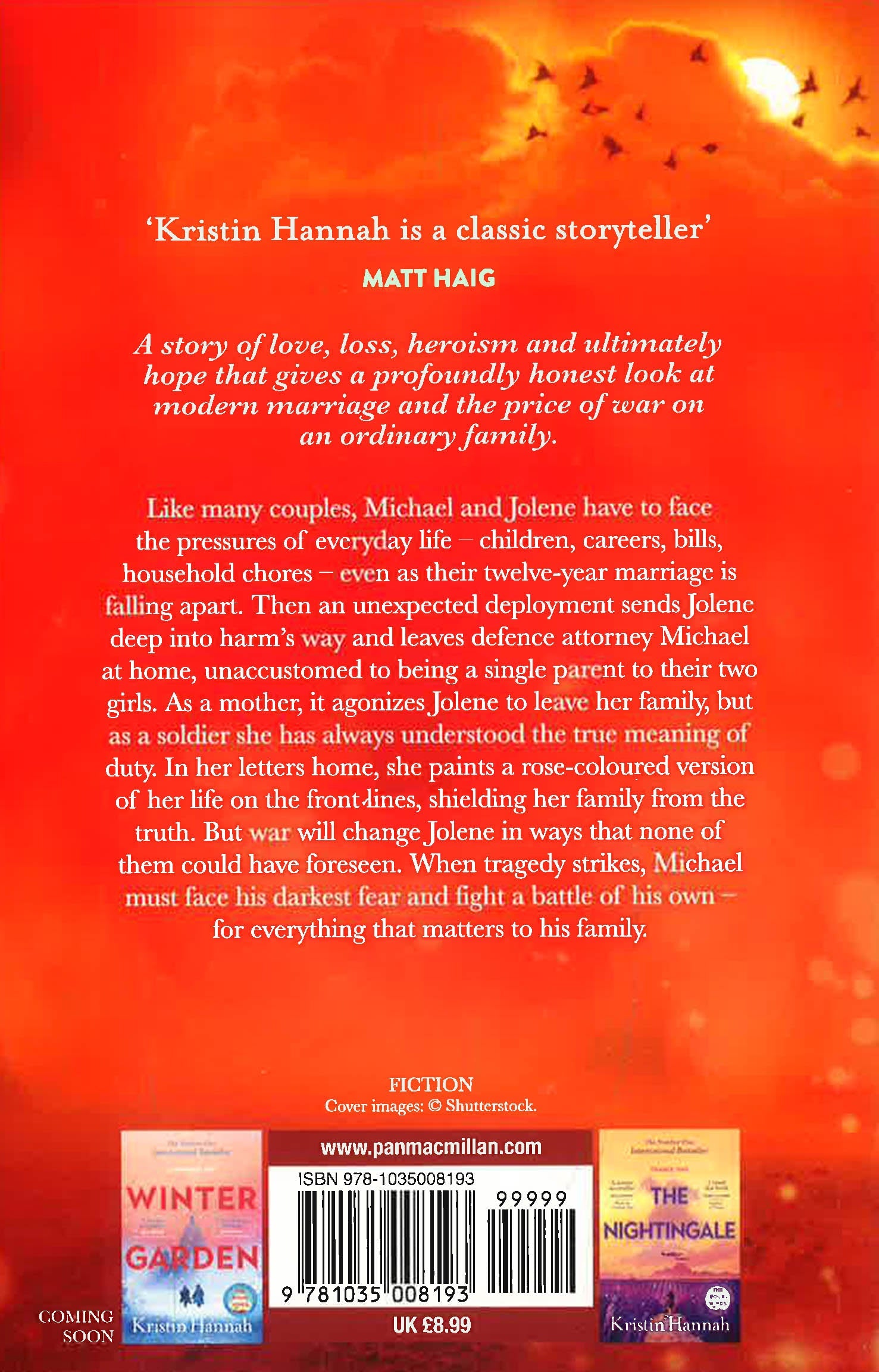 From the New York Times number one bestselling author of The Nightingale and The Four Winds, comes Kristin Hannah's provocative and timely portrait of hope, honour, loss, forgiveness - and the elusive nature of love.
