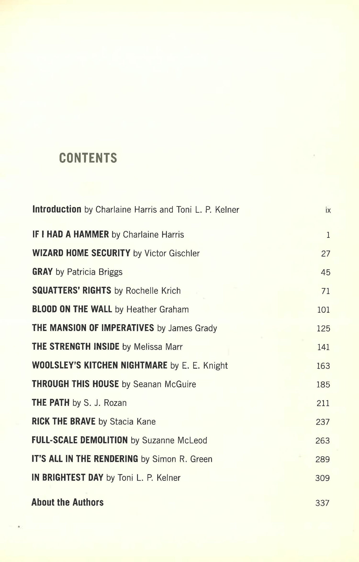 As well as a brand-new Sookie Stackhouse story by the Number 1 Sunday Times bestselling author Charlaine Harris, there are 13 more cautionary tales of home renovation by bestselling authors Patricia Briggs, James Grady, Heather Graham, Melissa Marr, amongst others. This is an outstanding line-up of frightening and funny fixer-upper tales guaranteed to shake foundations and rattle readers' pipes.
