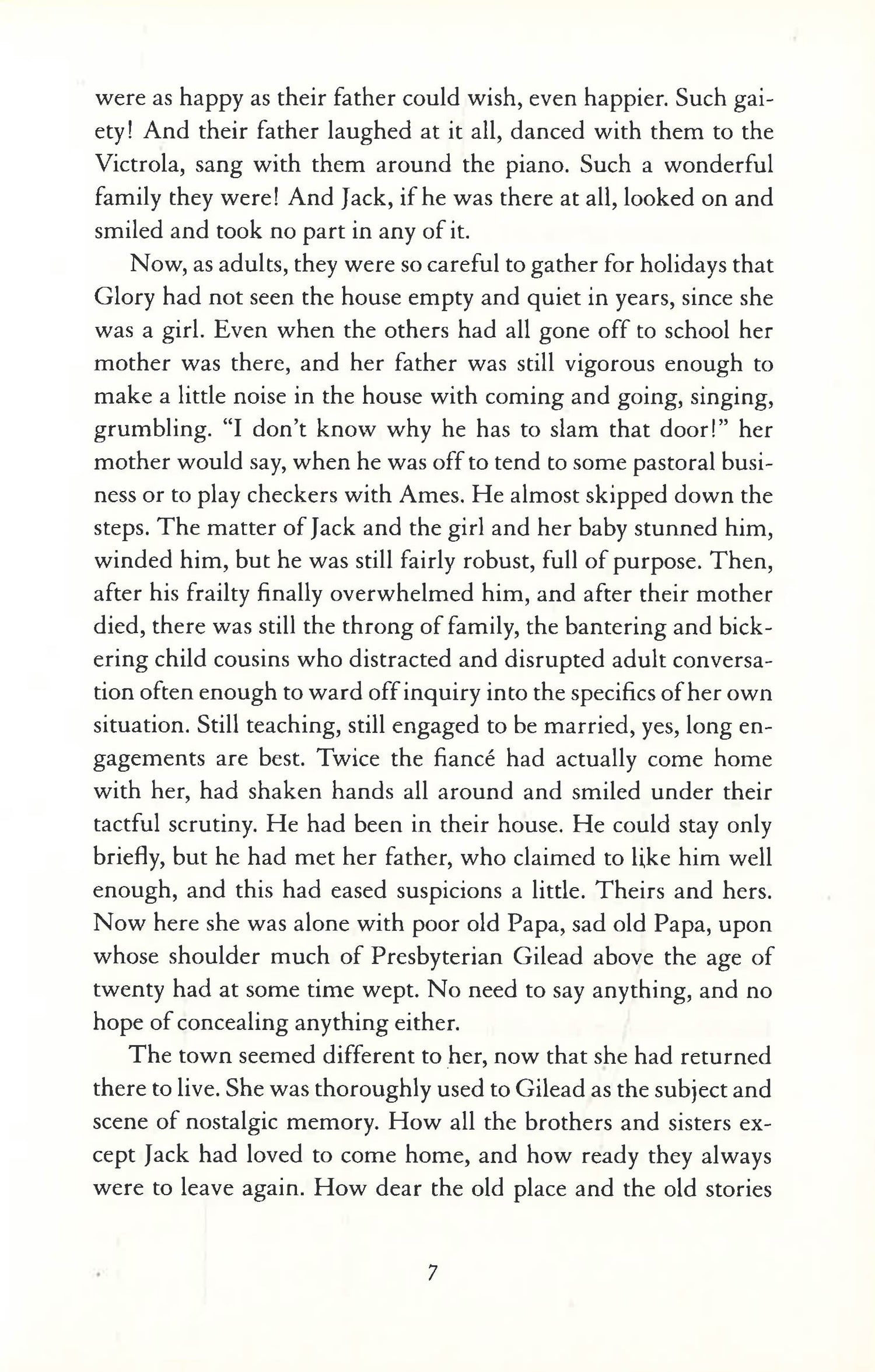 Hailed as "incandescent," "magnificent," and "a literary miracle" (Entertainment Weekly), hundreds of thousands of readers were enthralled by Marilynne Robinson's Gilead. Now Robinson returns with a brilliantly imagined retelling of the prodigal son parable, set at the same moment and in the same Iowa town as Gilead.
