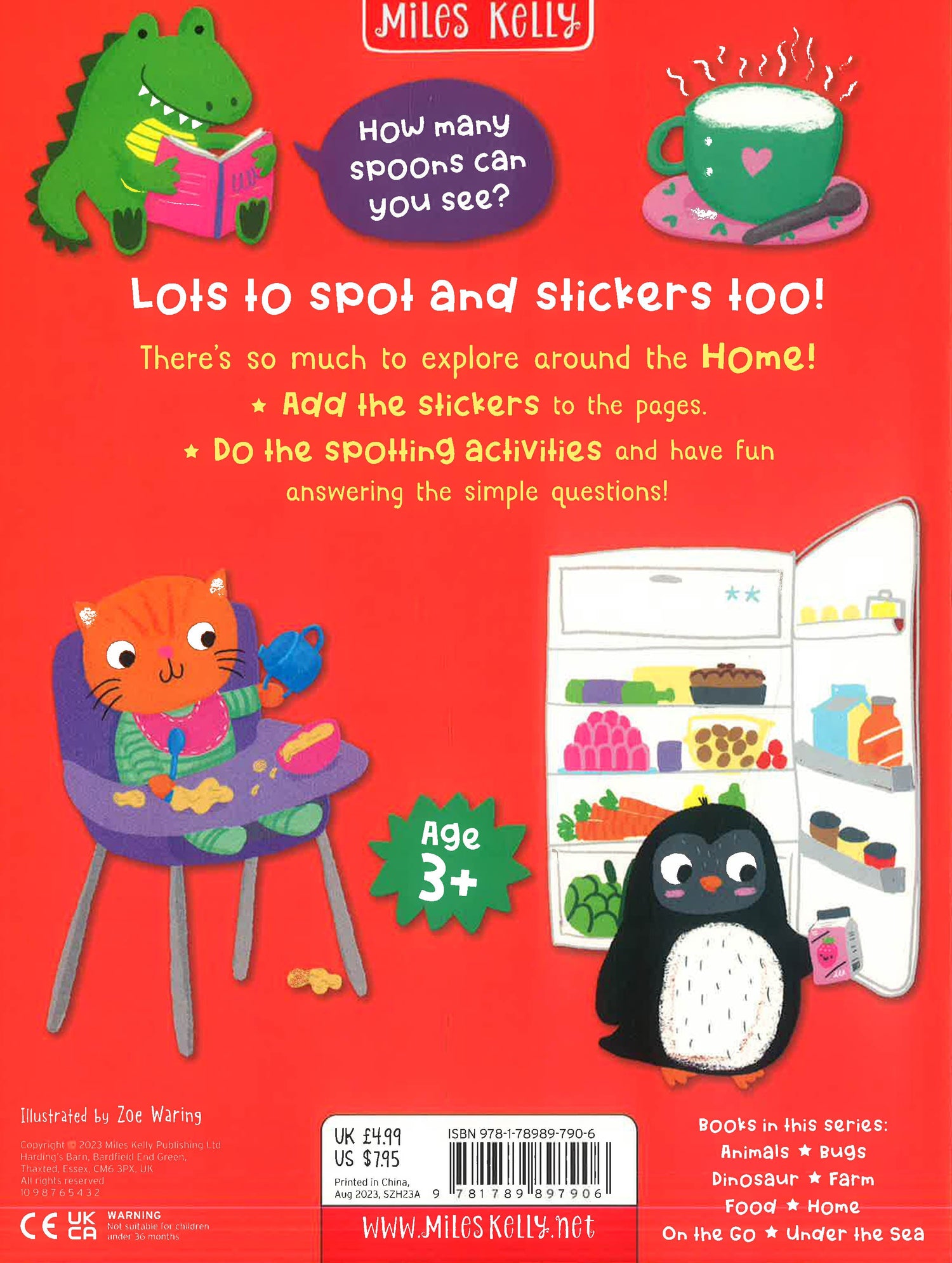This busy book is packed with all sorts of things to spot and name around the home. Each bright double-page spread explores a new part of the house and includes simple spotting activities that introduce colours, numbers, opposites and more. Children will love placing the stickers to finish off the colourful pages.