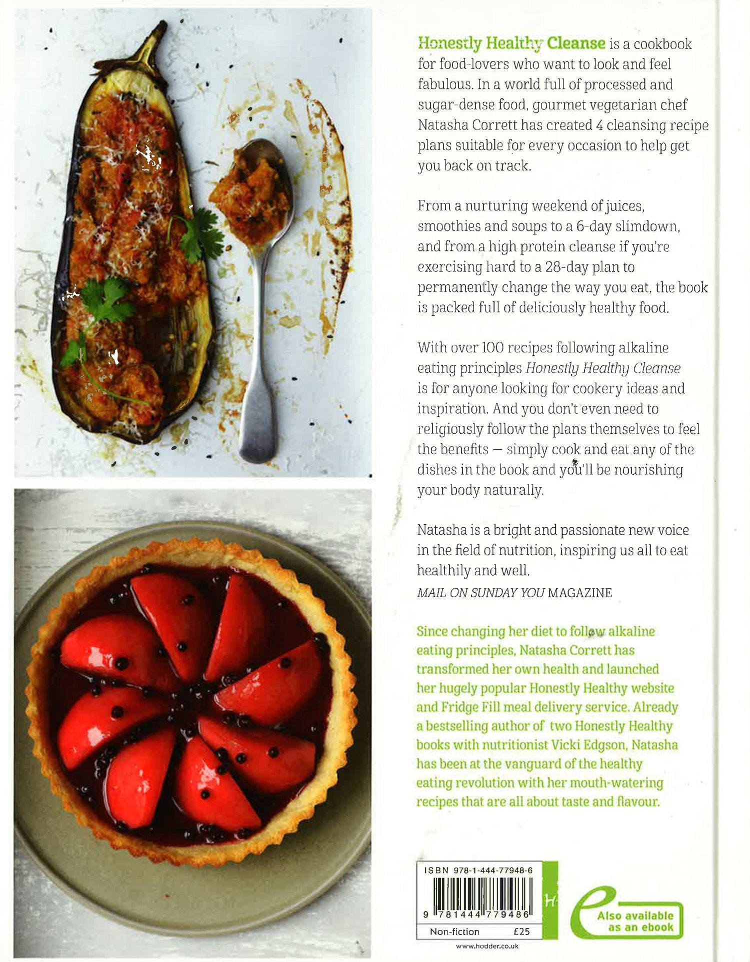 Honestly Healthy Cleanse is a cookbook for food-lovers who want to look and feel fabulous. In a world full of processed and sugar-dense food, gourmet vegetarian chef Natasha Corrett has created 4 cleansing recipe plans suitable for every occasion to help get you back on track.