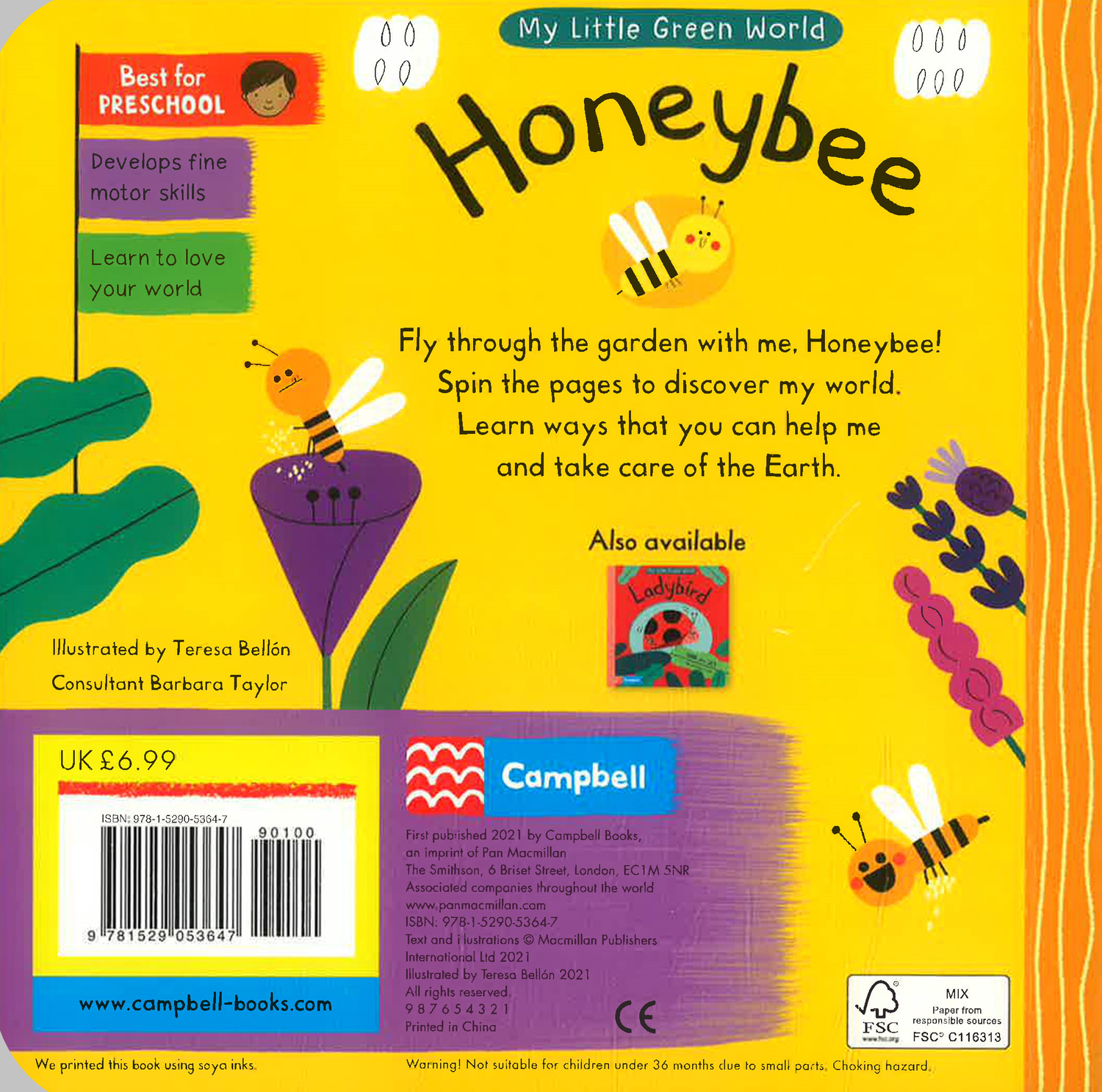 Learn to love nature, as you meet Honeybee and explore her world in this eco-friendly board book with incredible spinning mechanisms.