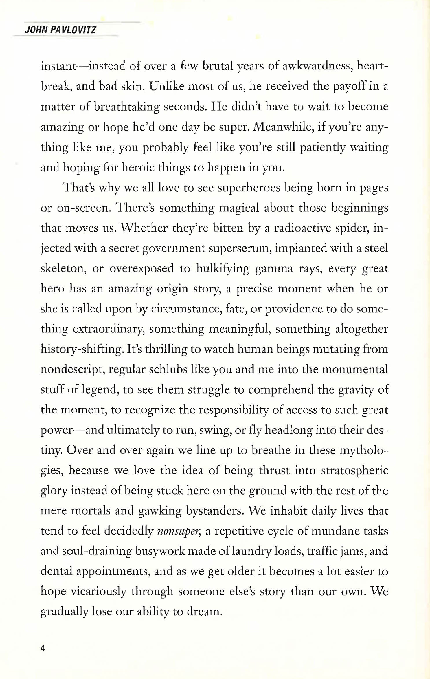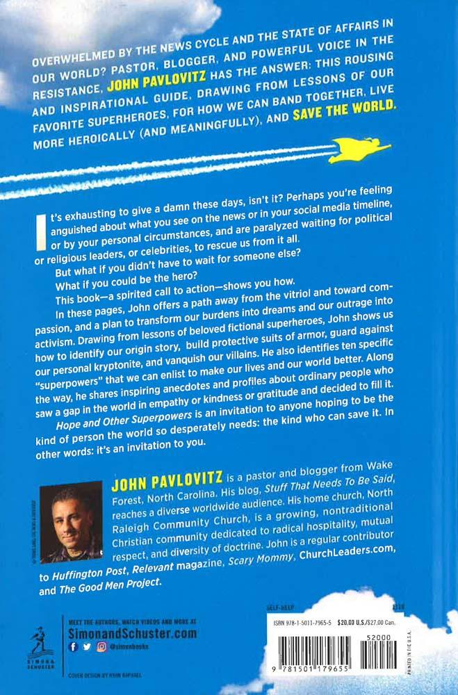Overwhelmed by the news cycle and the state of affairs in our world? Pastor, blogger, and powerful voice in the Resistance, John Pavlovitz has the answer: this rousing and inspirational guide, drawing from lessons of our favorite superheroes, for how we can band together, live more heroically (and meaningfully), and save the world. It's exhausting to give a damn these days, isn't it? Perhaps you're feeling anguished about what you see on the news or in your social media timeline, or by your personal circumstances, and are paralyzed waiting for political or religious leaders, or celebrities, to rescue us from it all. In these pages, John offers a path away from the vitriol and toward com-passion, and a plan to transform our burdens into dreams and our outrage into activism. Drawing from lessons of beloved fictional superheroes, John shows us how to identify our origin story, build protective suits of armor, guard against our personal kryptonite, and vanquish our villains. He also identifies ten specific "superpowers" that we can enlist to make our lives and our world better. Along the way, he shares inspiring anecdotes and profiles about ordinary people who saw a gap in the world in empathy or kindness or gratitude and decided to fill it.
