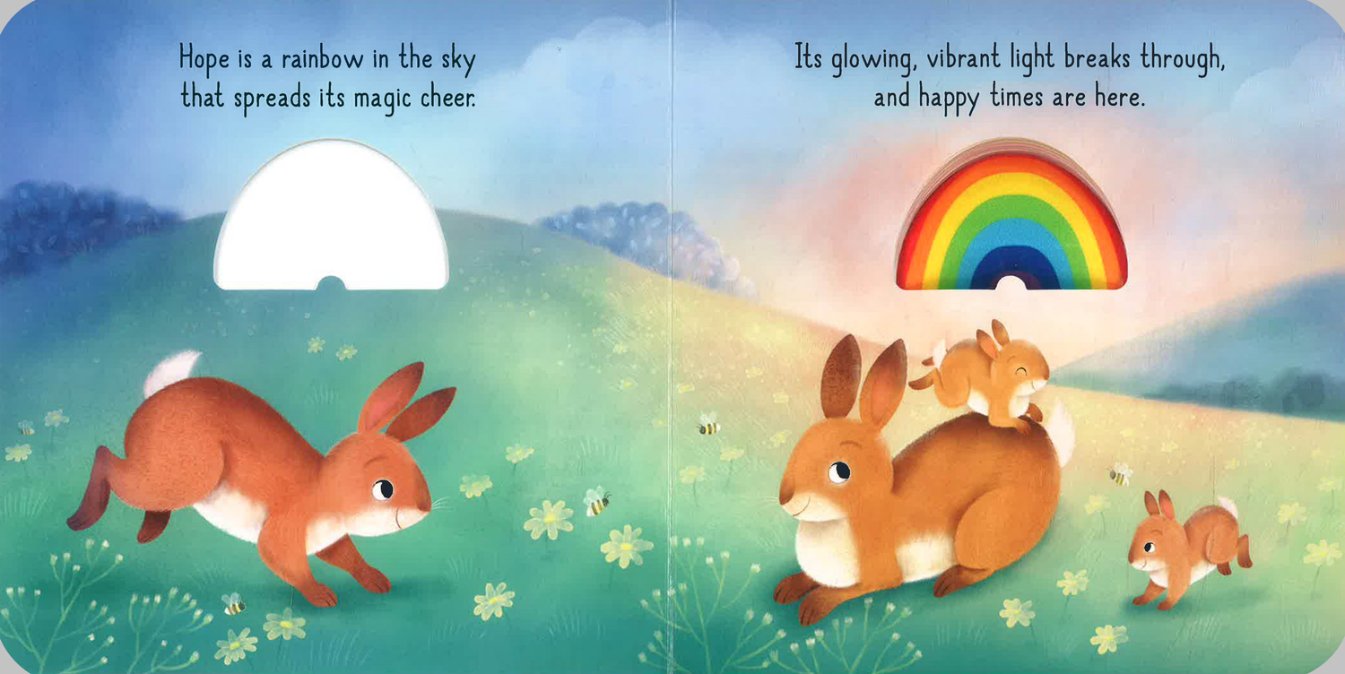 This adorable board book, which includes a soft, padded rainbow, features reassuring text about hope and happiness, as well as stunning illustrations.