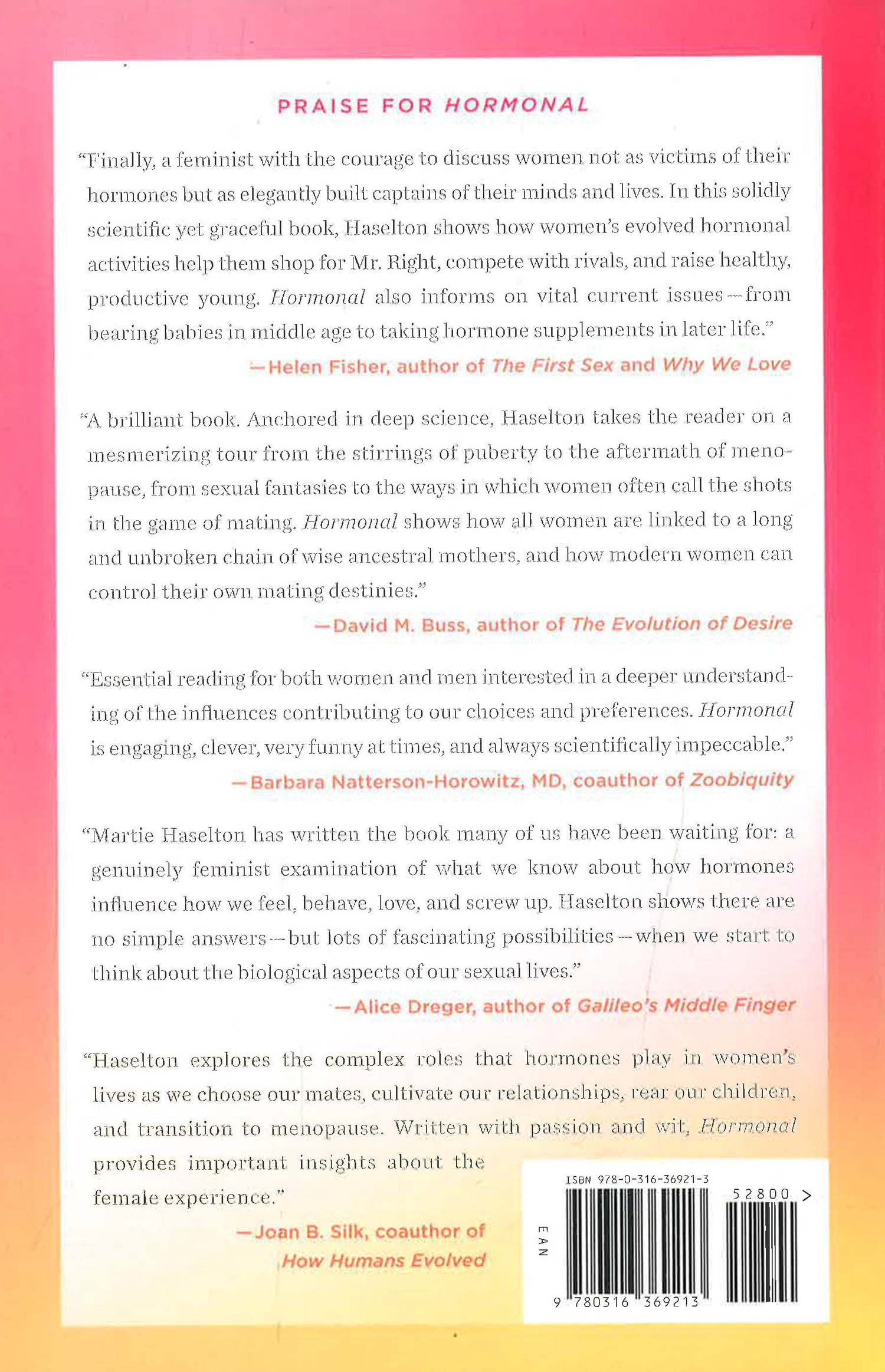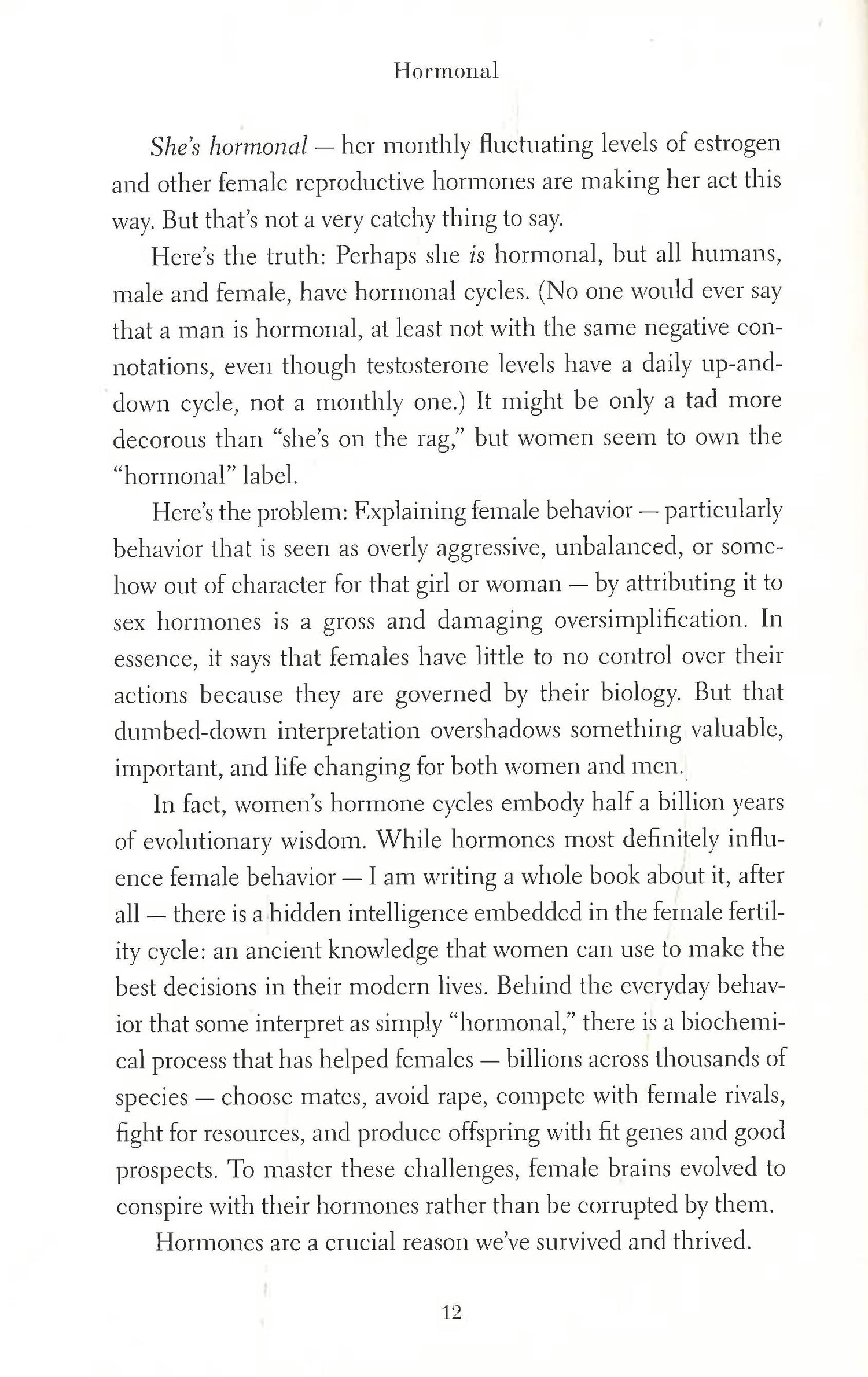 At the core of Hasleton's new Darwinian feminism is her remarkable discovery that humans, like our animal cousins, possess a special phase of sexuality, called estrus, which comes with a host of physiological and behavioral changes. Rigorously researched, entertaining, and empowering, Hormonal offers women deep new insights into their bodies, brains, relationships, and affairs, allowing them to make better-informed choices about sex, marriage, friendship, contraception, and more. Above all, Hormonal is a clarion call to appreciate and embrace the genius of female biology.