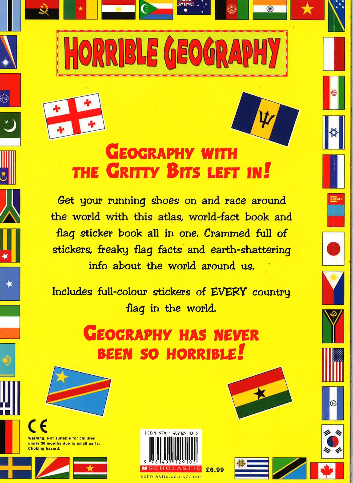The Horrible Geography Flags of the World sticker book, crammed full with Horrible facts and stats about the world around us. Stickers of flags of the world.