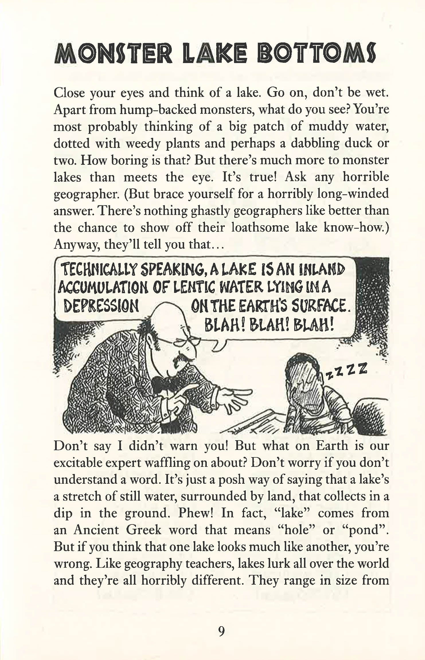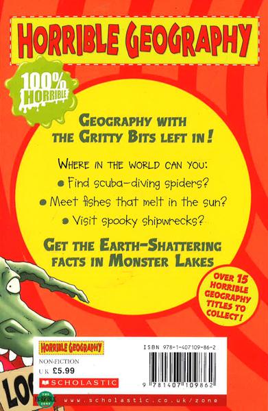 Monster Lakes" sweeps young readers along on a tour of the world's most fascinating lakes. They can explore a volcanic crater lake meet scuba-diving spiders, and hunt monsters from the deep. With a brand-new cover design, text updates and an added extra-horrible index, it's geography with even more gritty bits left in!