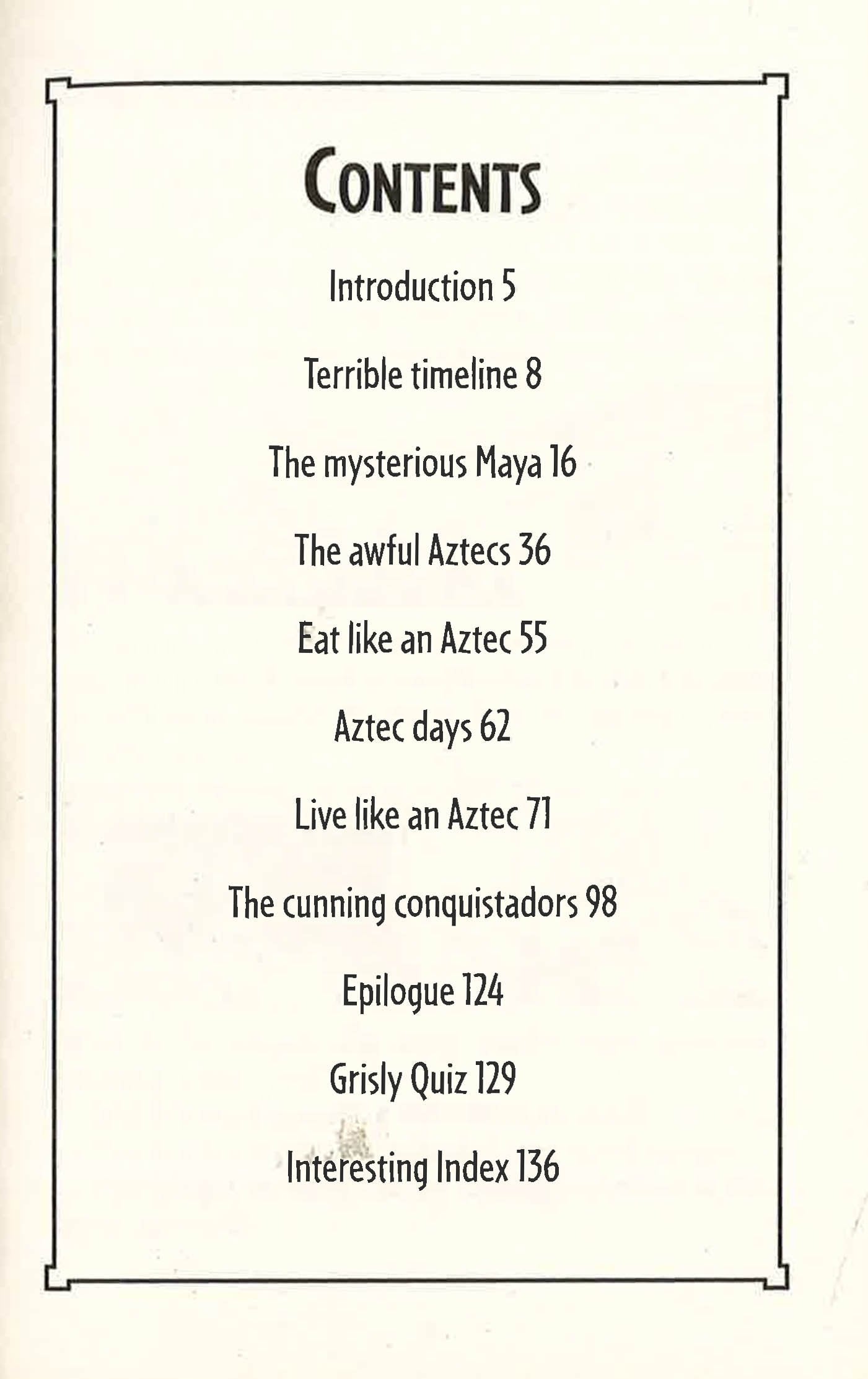 Readers can discover all the foul facts about the Angry Aztecs, including why the Aztecs liked to eat scum, when the world is going to end and their horrible habit of drinking live toads in wine. Filled with foul facts, terrible timelines and a grisly quiz, this bestselling classic title is sure to be a huge hit with yet another generation of Terry Deary fans. It's history with the nasty bits left in!