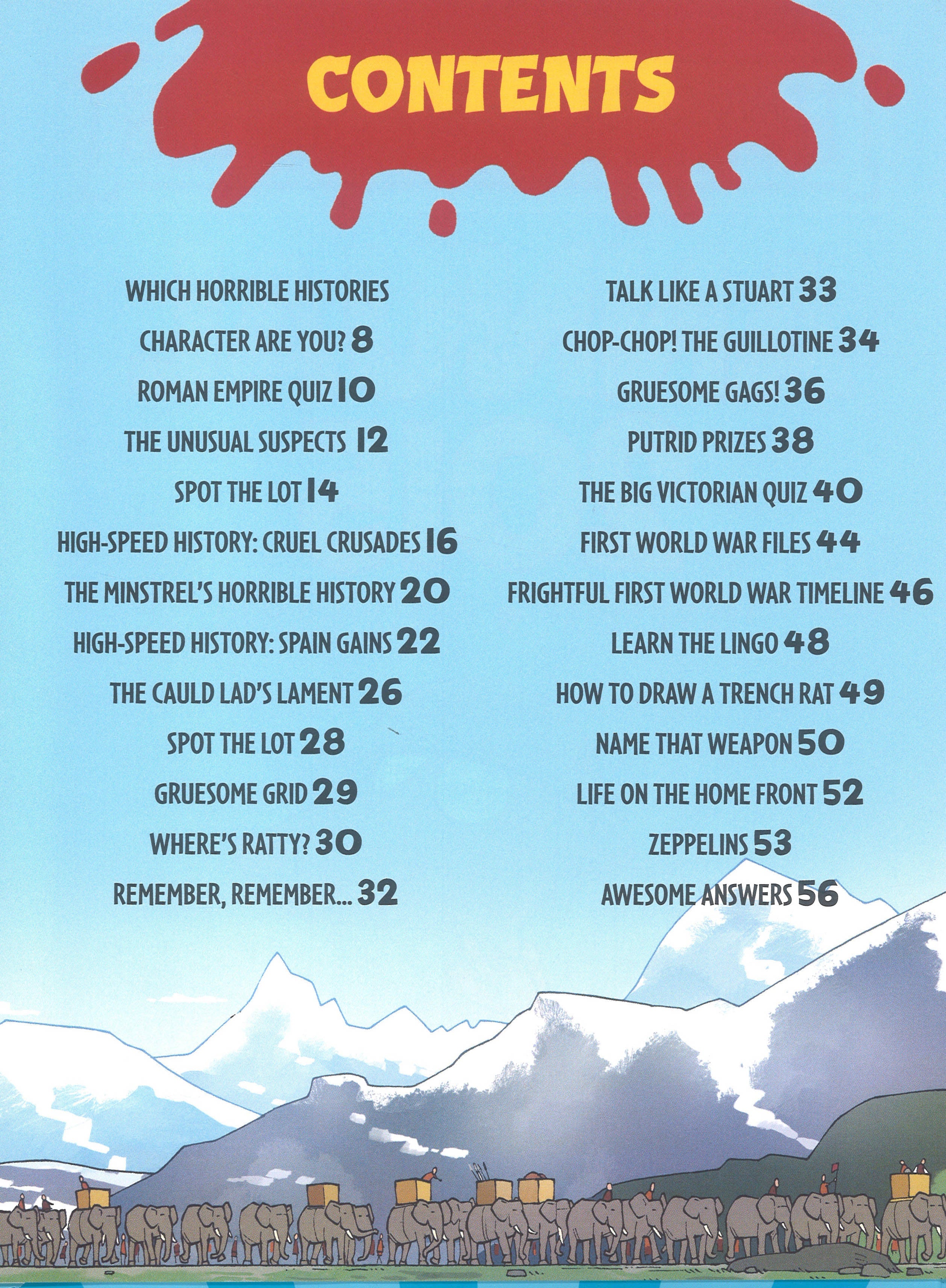 The Horrible Histories Annual 2015 is a must-have for all Horrible Histories fans. Packed with foul facts, gory games, dreadful jokes, quick quizzes and putrid puzzles - it's the annual with rat-itude! Discover all the dreadful details about your favourite eras of history from the Rotten Romans, to the Terrible Tudors and the Gorgeous Georgians to the Woeful World Wars. History has never been so horrible!