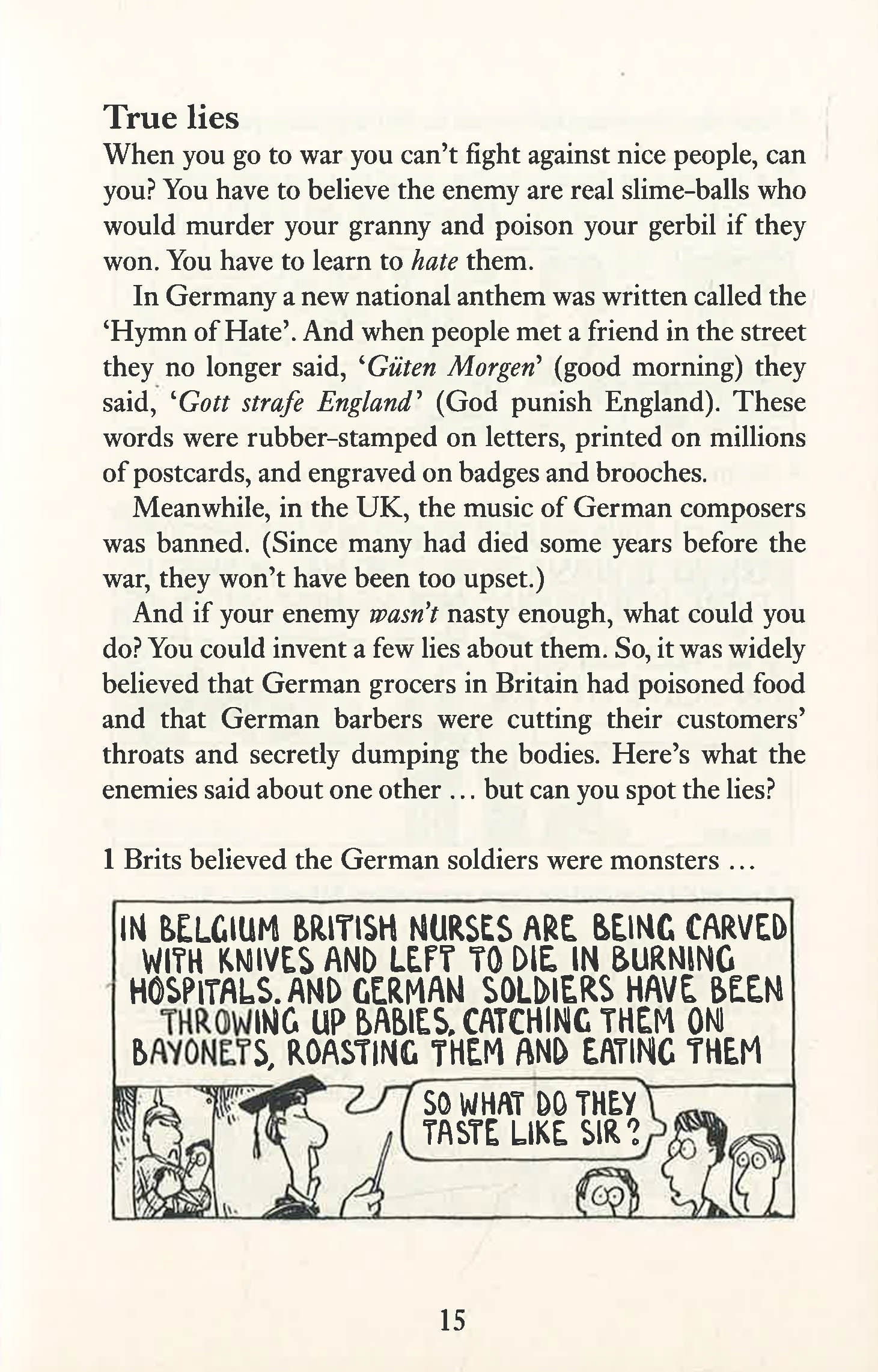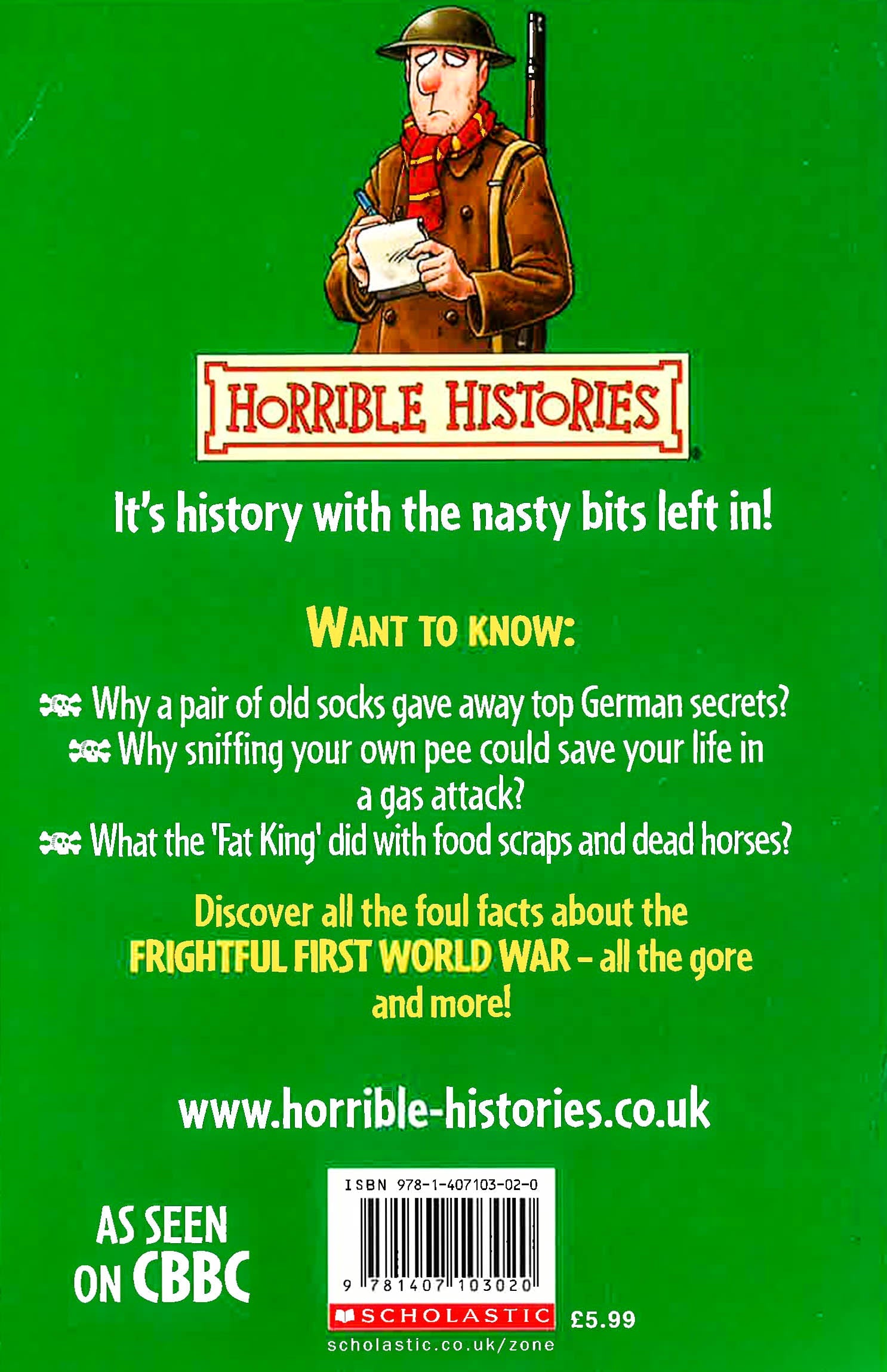 Readers can discover all the foul facts about the Frightful First World War, including what the 'Fat King' did with food scraps and dead horses, how sniffing your own pee could save your life in a gas attack and why a pair of old socks gave away top German secrets. With a bold, accessible new look and a heap of extra-horrible bits, these bestselling titles are sure to be a huge hit with yet another generation of Terry Deary fans.