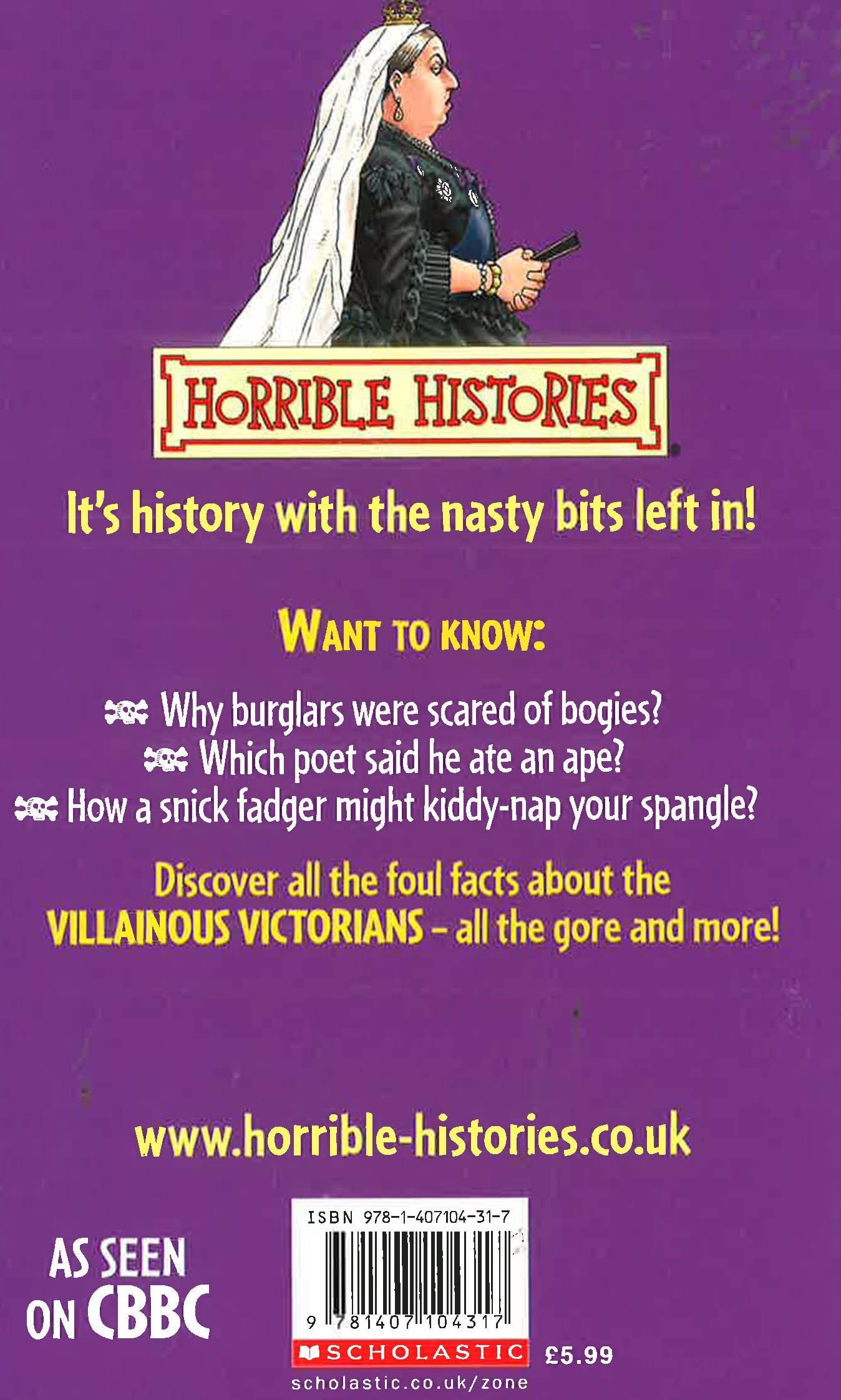 Readers can discover all the foul facts about the VILLAINOUS VICTORIANS, including Why burglars were scared of bogies, which poet said he ate an ape and how a snick fadger might kiddy-nap your spangle. With a bold, accessible new look and a heap of extra-horrible bits, these bestselling titles are sure to be a huge hit with yet another generation of Terry Deary fans.