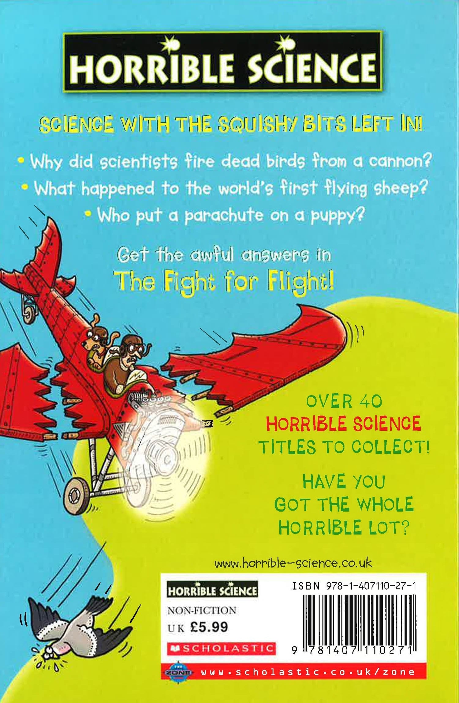 Science with the squishy bits left in! The Fearsome Fight for Flight will send you sky-high! Are you in a flap to discover: * who put a parachute on a puppy? * why scientists fire dead birds from cannon? * what happened to the world's first flying sheep? If you think you can stomach the sick side of Science, then read on as we go plane crazy. Laugh at some seriously silly flying stunts, find out which scientist was blown up in a balloon, and learn how to build a world-beating plane. With fantastic fact files, quirky quizzes and crazy cartoons The Fearsome Fight for Flight is a real high-flier! Science has never been so horrible!