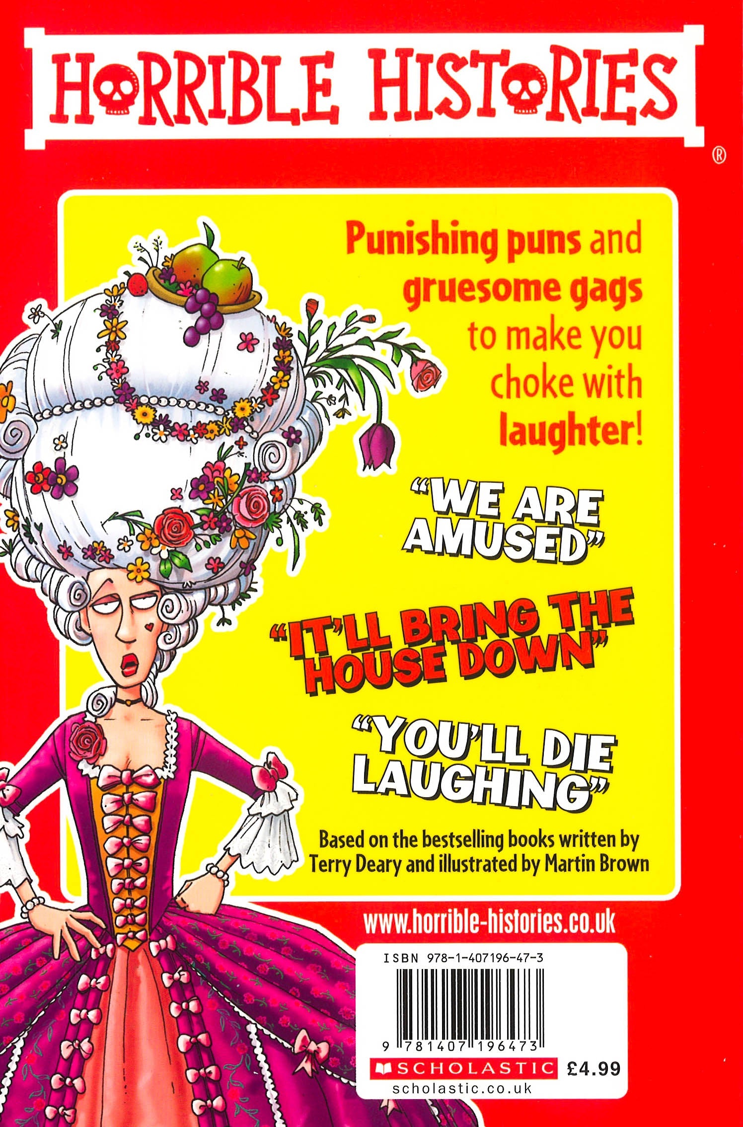 The Horribly Hilarious Joke Book, from the Horrible Histories team is full of hundreds of horribly hilarious historical jokes and illustrations in one laugh-out-loud book. A must-have book for any Horrible Histories fan Illustrated throughout You'll literally laugh your head off at this comical collection of nasty bits the perfect gift for any budding comedian