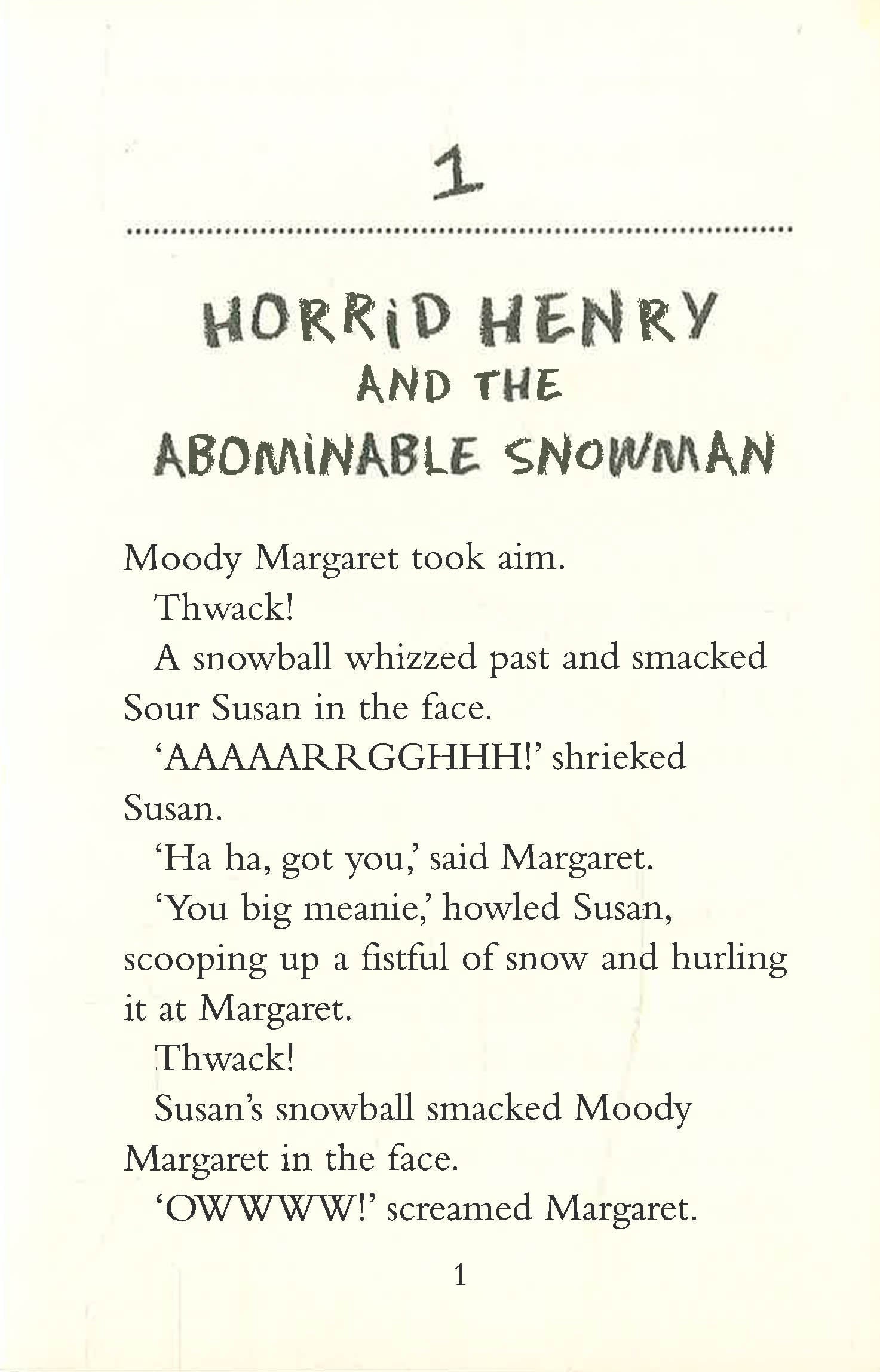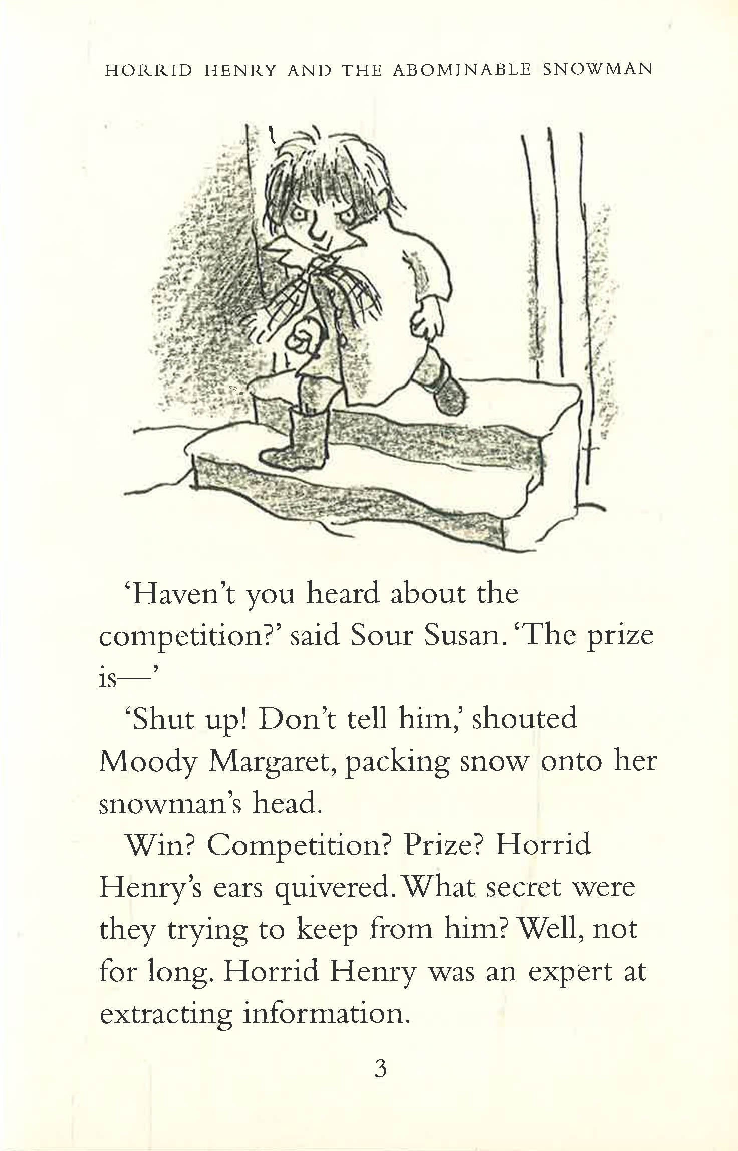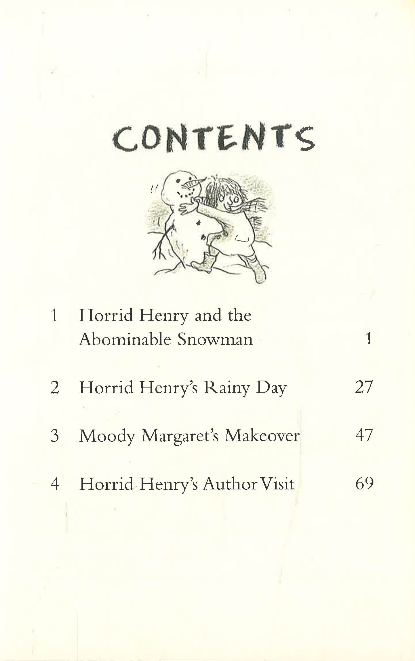 There’s a snowman-building contest in town and the grand prize is a year’s supply of free ice cream Horrid Henry just has to beat Moody Margaret and her dumb old ballerina snowman. So Henry makes the biggest monster snowman ever. But Henry might have to use a few last-minute tricks to win this one. Plus three other stories that won’t melt.