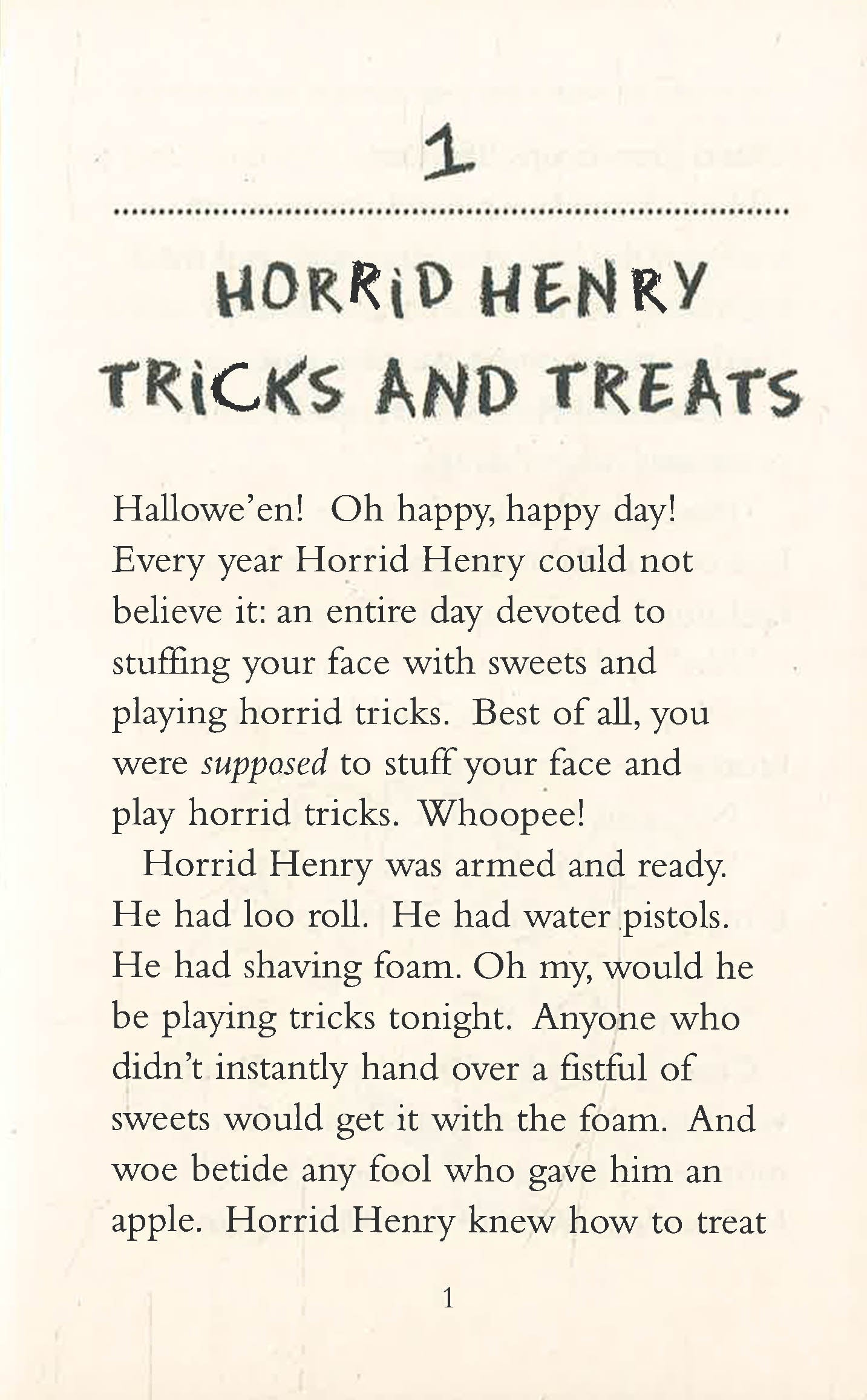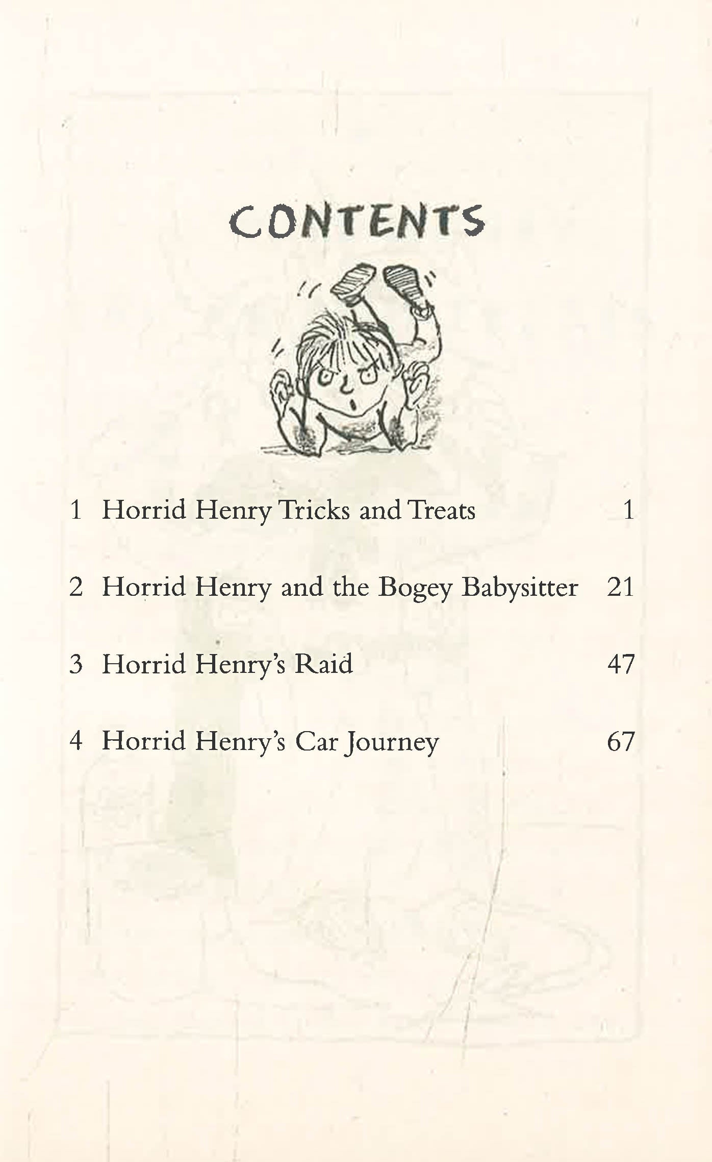 This book contains some trick-or-treating, a HELLISH babysitter, a secret raid and a HORRID car journey!