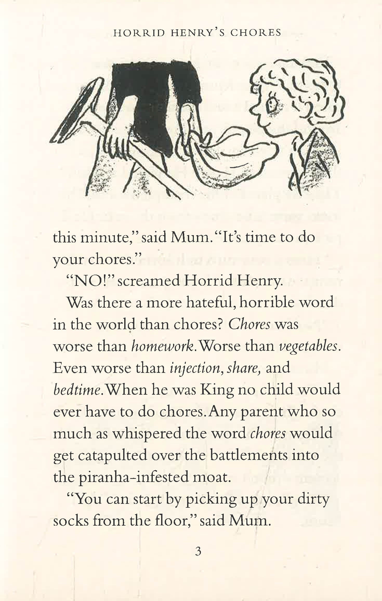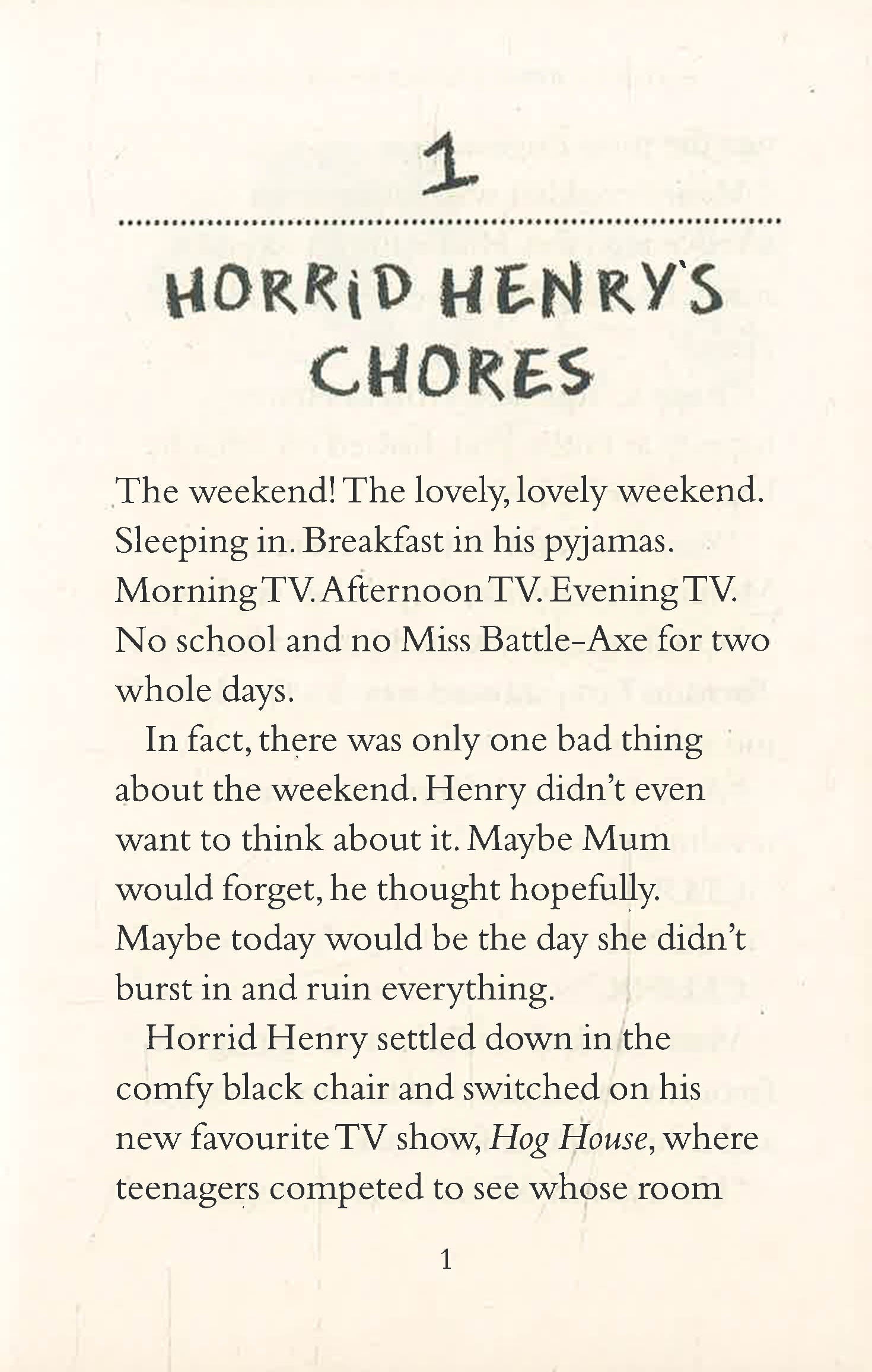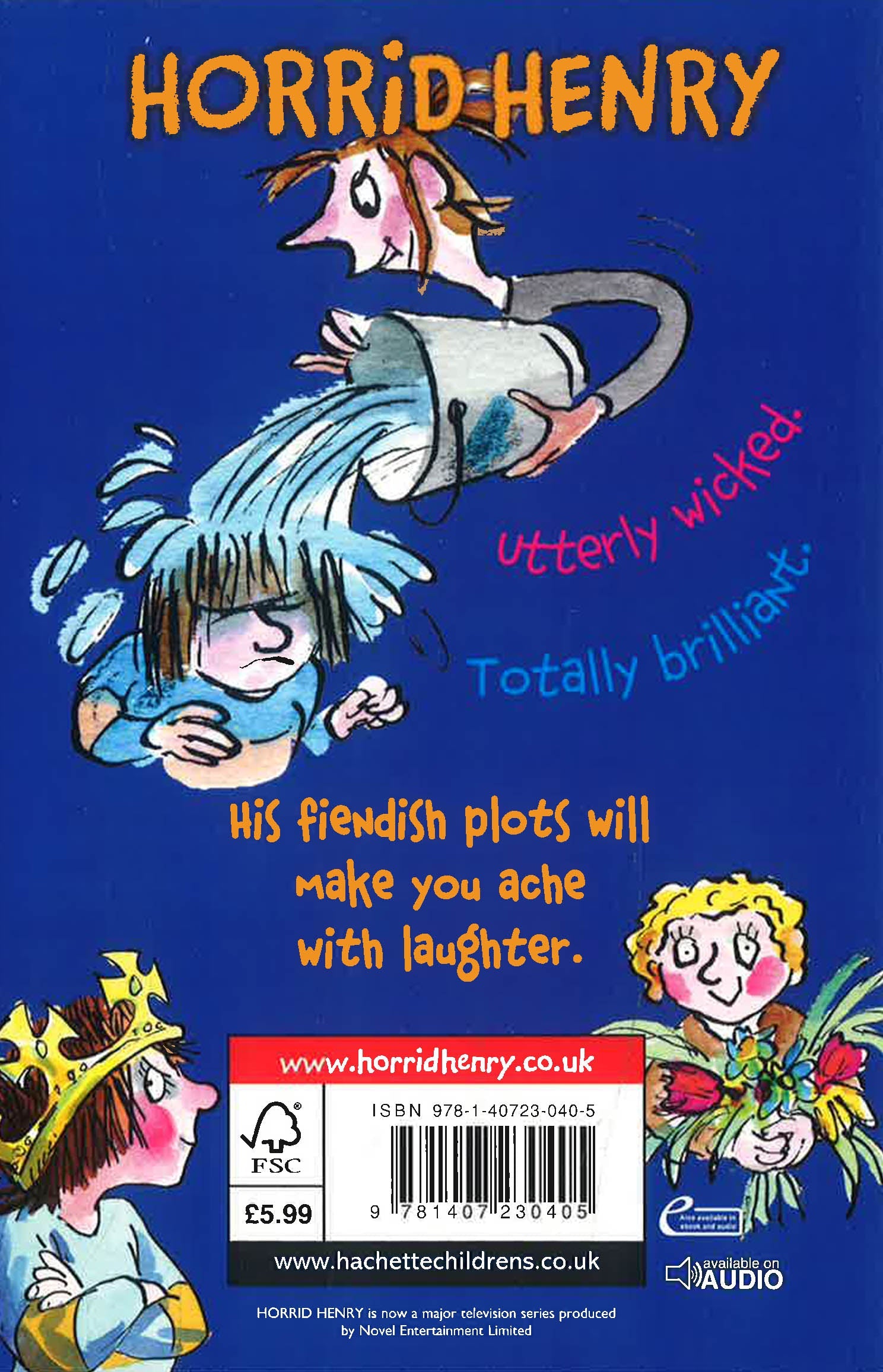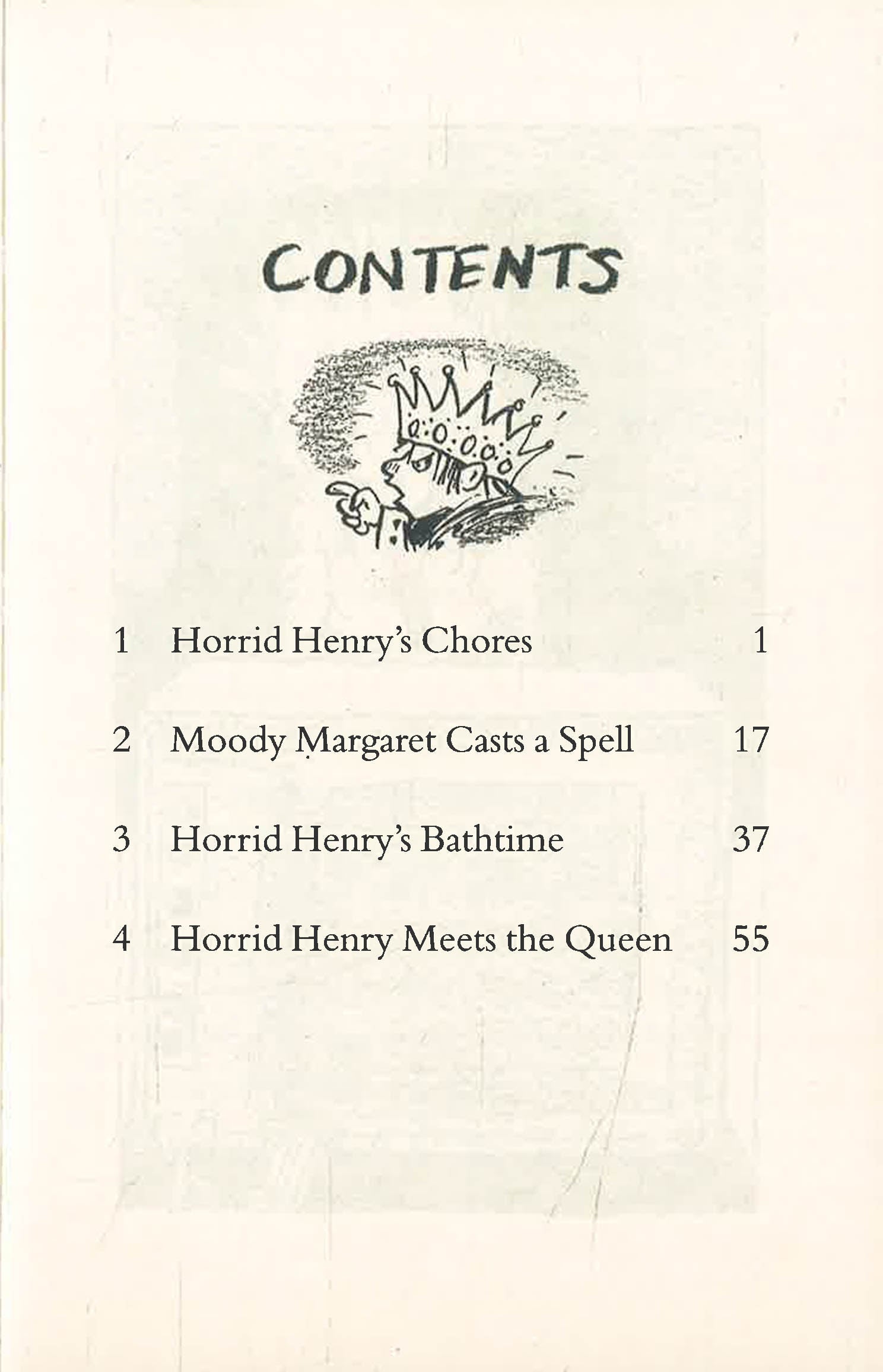 Four uproarious stories in which the Queen visits Horrid Henry’s school and watches the children make wattle and daub; and Horrid Henry ries to hypnotize Moody Margaret, tricks Perfect Peter into doing his household chores, and gets his own way at bathtime.
