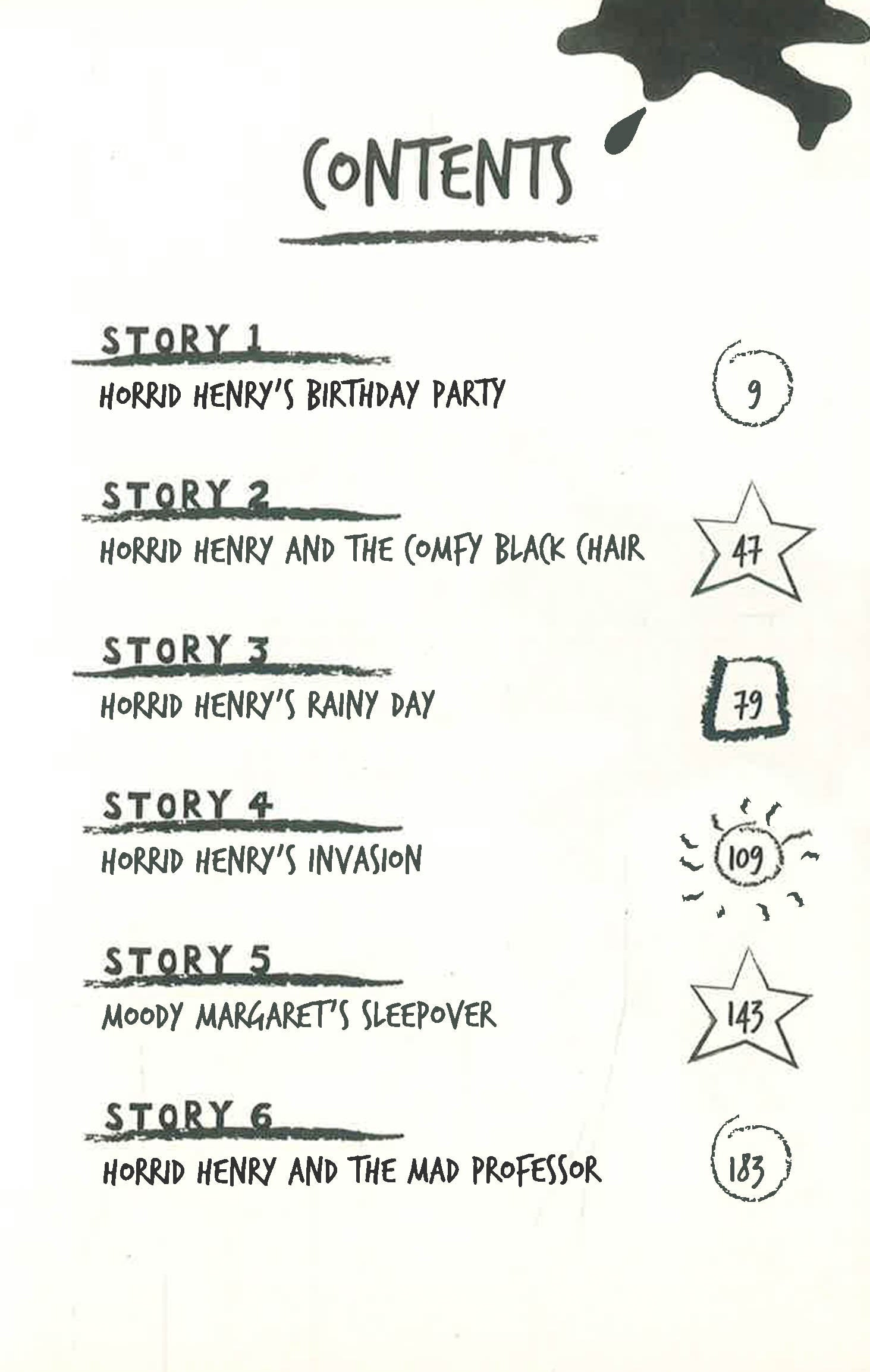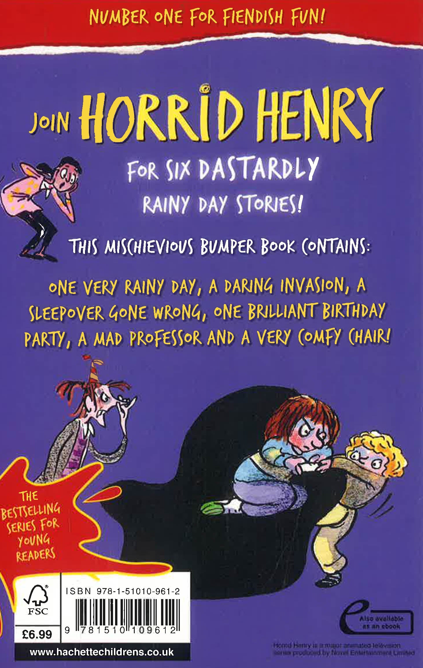Beat boredom on a rainy day with HORRID HENRY! This book contains six deviously daring rainy day stories about a BRILLIANT invasion, a MAD professor and a sleepover GONE WRONG! Plus loads of fun activities and jokes to keep Horrid Henry fans entertained.