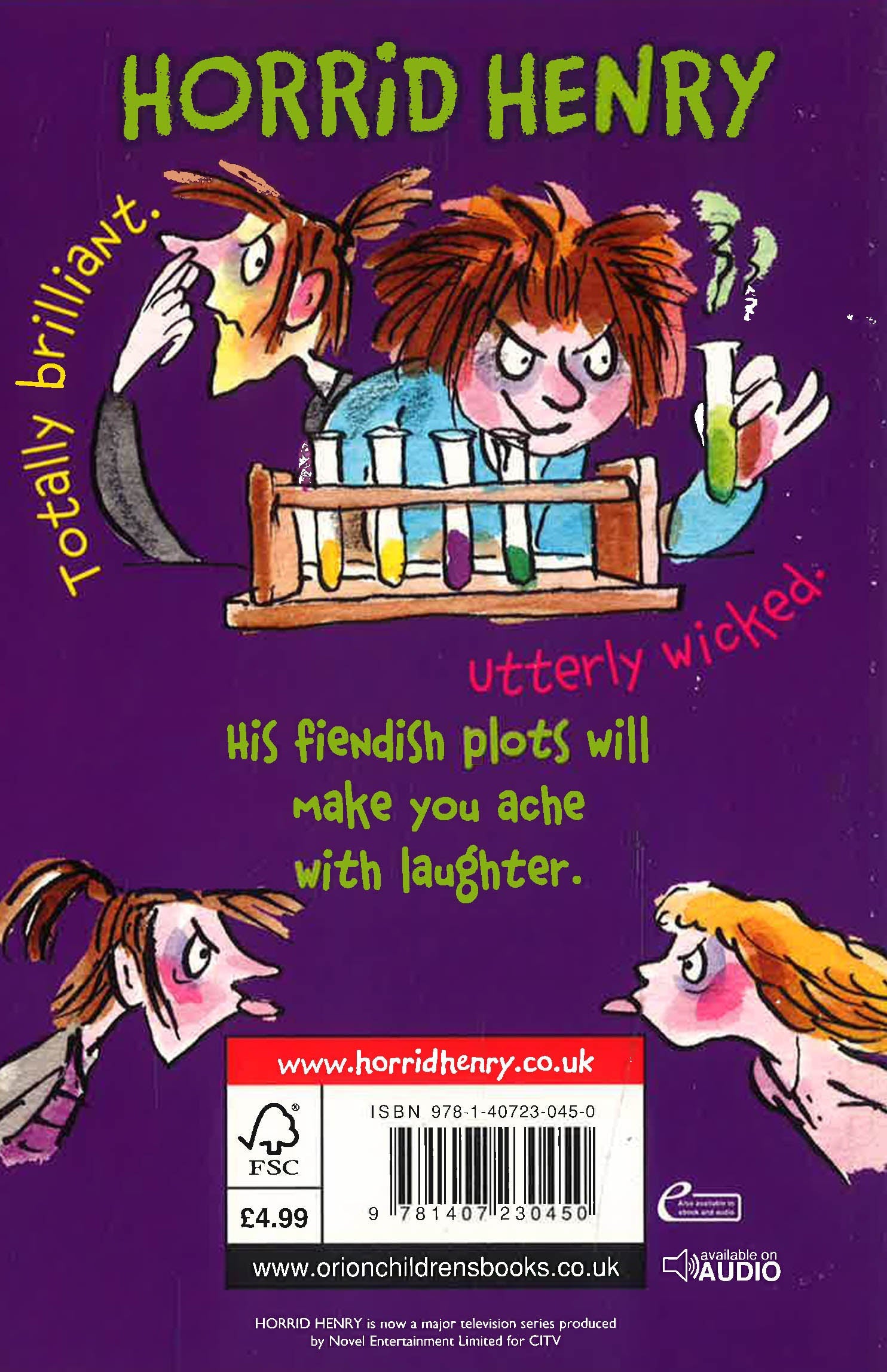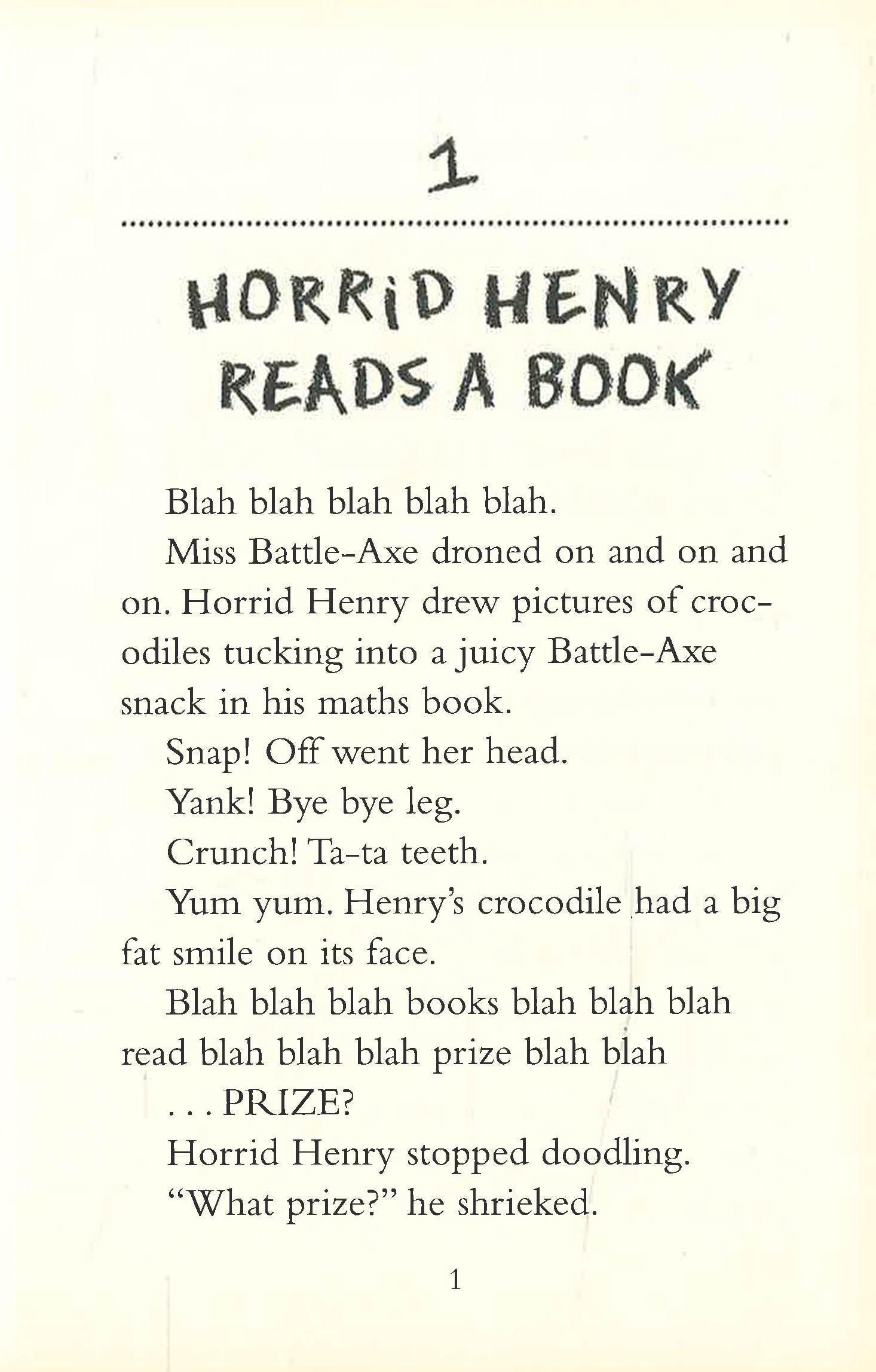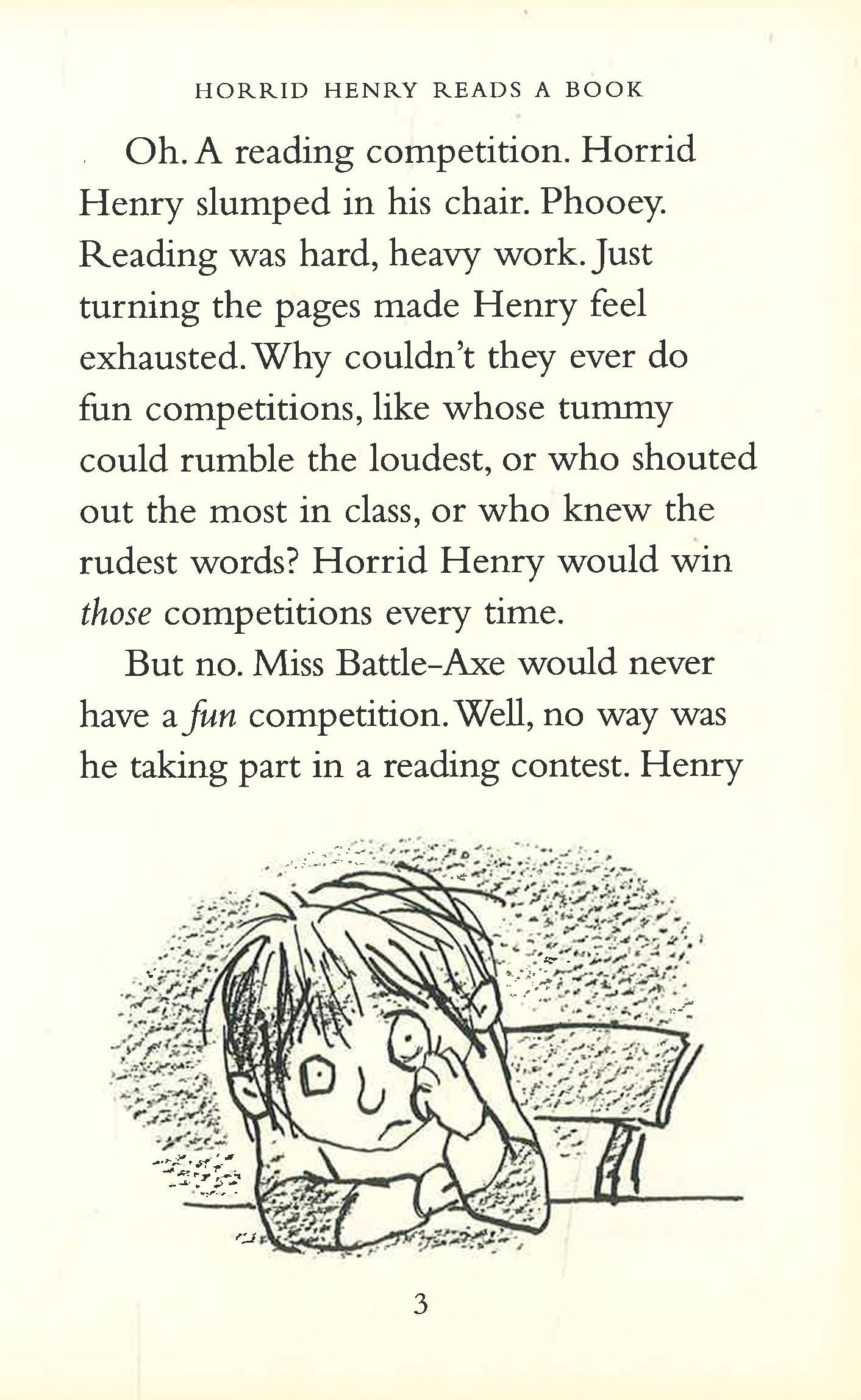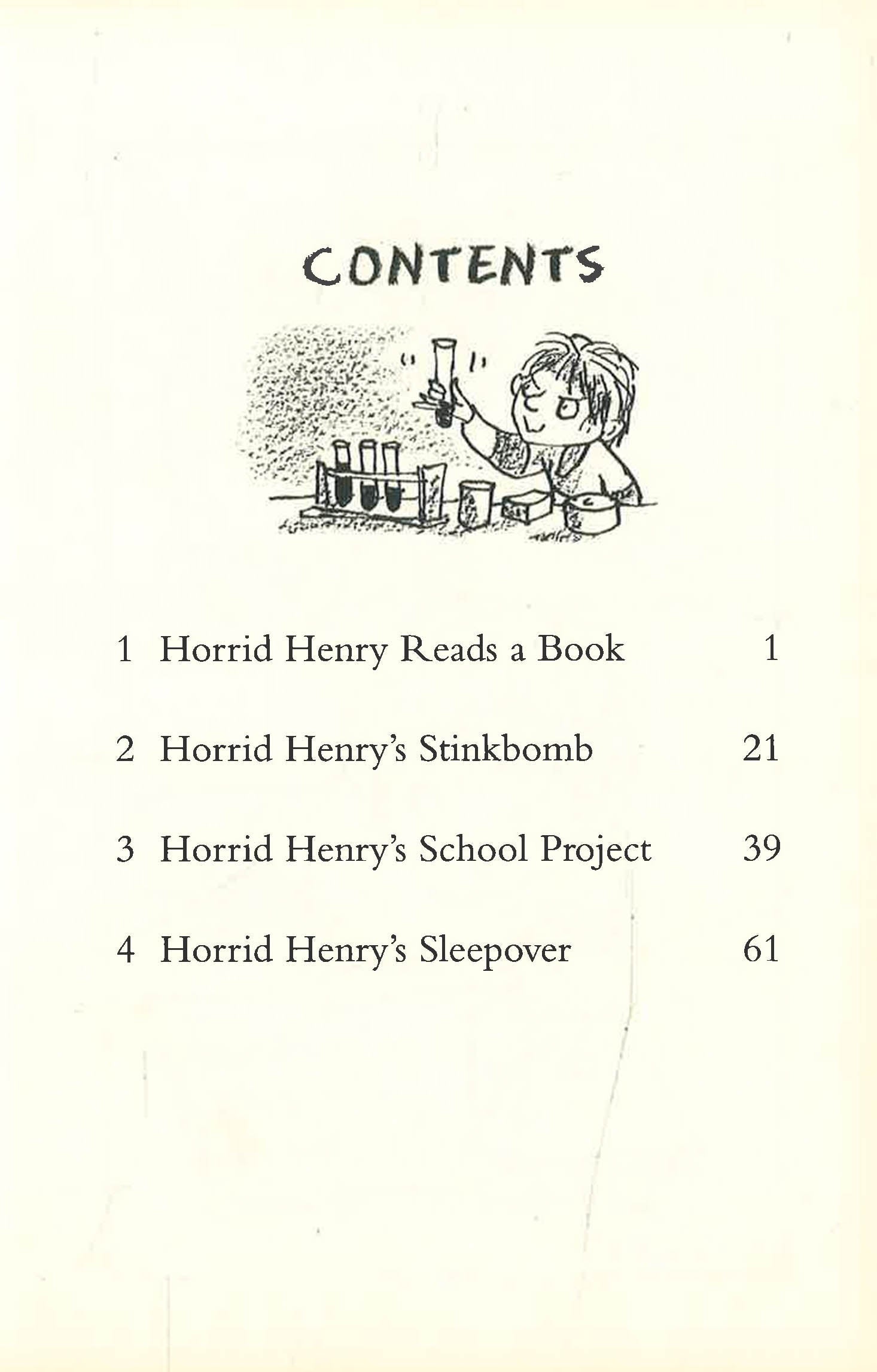 A stinkbomb becomes a deadly weapon in Horrid Henry's longrunning war with Moody Margaret; he uses all his guile to win the school reading competition, only to find the longed-for prize is not what he expected; he goes for a sleepover and retreats in horror when he finds that other people's houses aren't always as nice as his own; and he has the joy of seeing Miss Battle-Axe ticked off by the Head when he knows it was all his fault. In short, another vintage Horrid Henry title!
