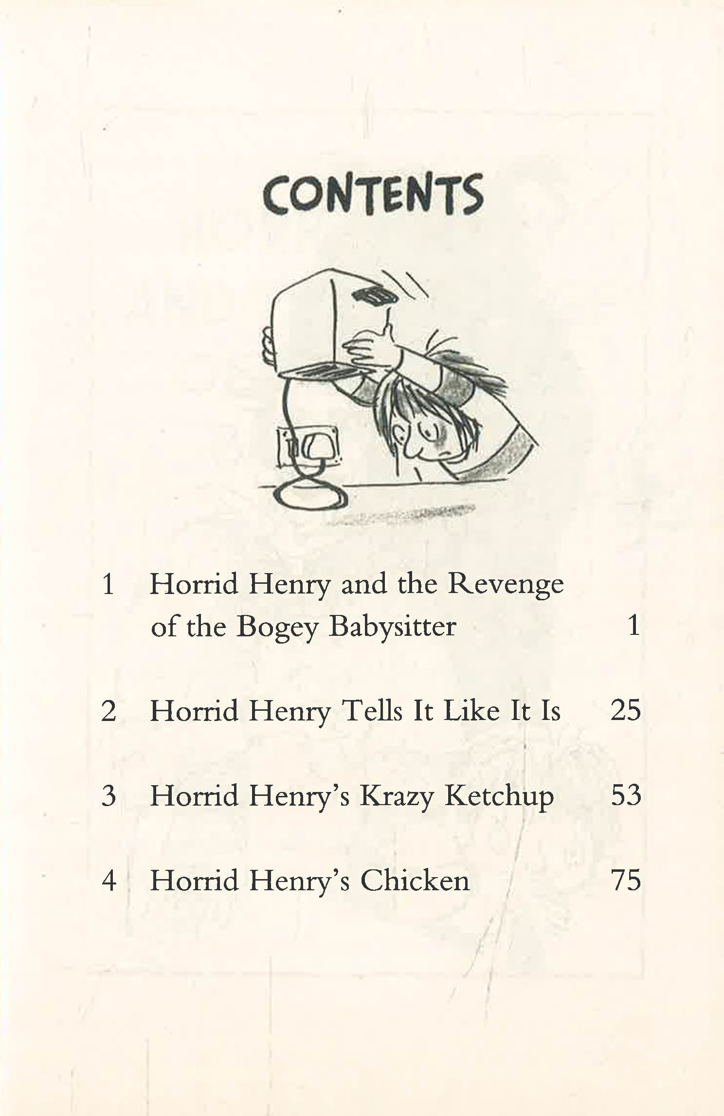 Contains four new stories - including Horrid Henry's Ketchup, Horrid Henry's Chicken, The Revenge of the Bogey Babysitter and Horrid Henry Tells It Like It Is. Discover the one thing Horrid Henry is scared of, watch out for the return of Rabid Rebecca, find out what happens when Henry makes a film about his family and lots more in the more hilarious and horrid storybook yet.
