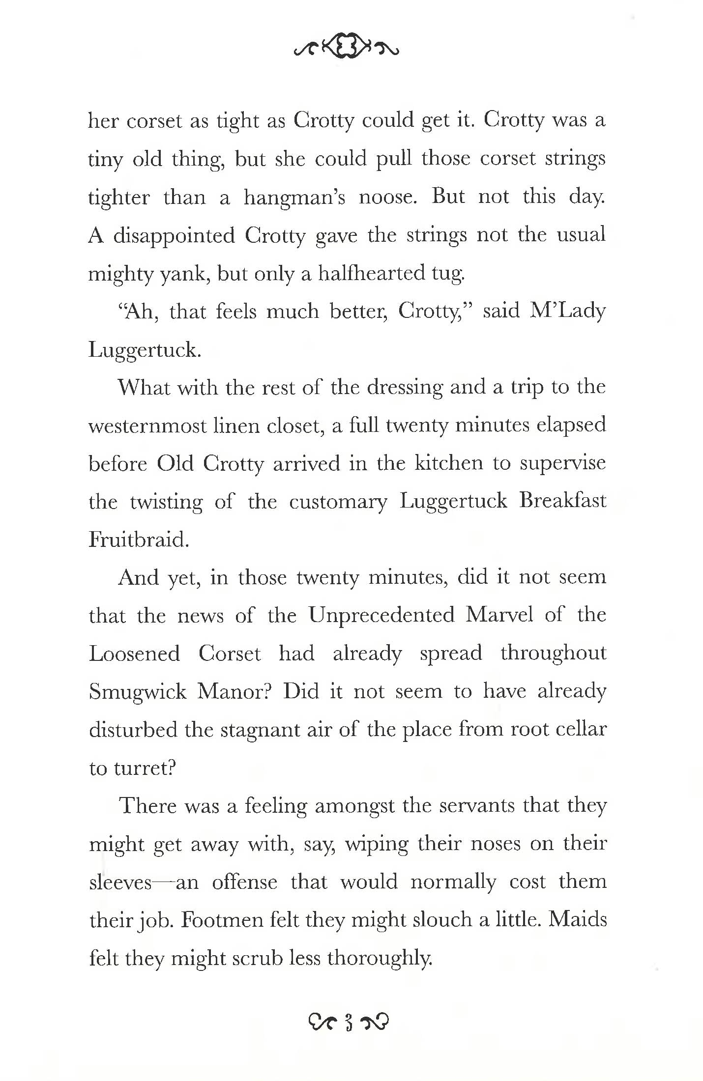 Angleberger's latest, loopiest middle-grade novel begins when M'Lady Luggertuck loosens her corset (it's never been loosened before!), thereby setting off a chain of events in which all the strict rules of Smugwick Manor are abandoned. Features a glow-in-the-dark cover.