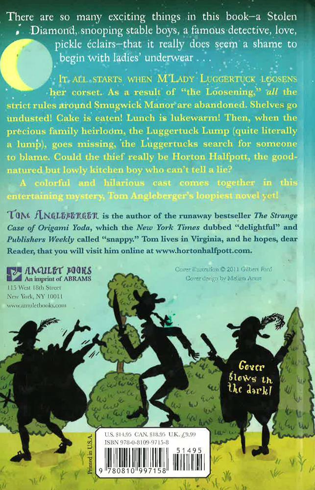 Tom Angleberger's latest, loopiest middle-grade novel begins when M'Lady Luggertuck loosens her corset (it's never been loosened before!), thereby setting off a chain of events in which all the strict rules of Smugwick Manor are abandoned. When, as a result of "the Loosening," the precious family heirloom, the Luggertuck Lump (quite literally a lump), goes missing, the Luggertucks look for someone to blame. Is it Horton Halfpott, the good-natured but lowly kitchen boy who can't tell a lie? Or one of the many colorful cast members in this silly romp of a mystery.Praise for Horton Halfpott"A positively gleeful historical mystery farce. Short chapters, a fast pace and plenty of linguistic and slapstistic humor will have young readers hoping that a sequel is planned. The scribbly pen-and-ink chapter-heading cartoon illustrations are just icing on the cake-or pickle eclair. A romp from start to finish." -Kirkus Reviews"Exaggerated black-and-white drawings emphasize the often wacky humor in this goofy faux-British mystery. Sprawling, outlandish tale." -The Bulletin of the Center for Children's Books"Readers will enjoy Angleberger's penchant for the absurd as well as his many droll asides. With Angleberger's many eclectic characters, his wild-and-witty storytelling, and a lighthearted but perplexing mystery-involving a "lump" of diamonds, a couple of wigs, and a bust of Napoleon-readers are in for a treat." -Publishers Weekly "From the author of The Strange Case of Origami Yoda, here's an amusing romp of a mystery that balances skulduggery with just rewards." -Booklist "Much like Dickens or Dahl, an opinionated narrator with a strong sense of the ridiculous directs this story." -School Library Journal