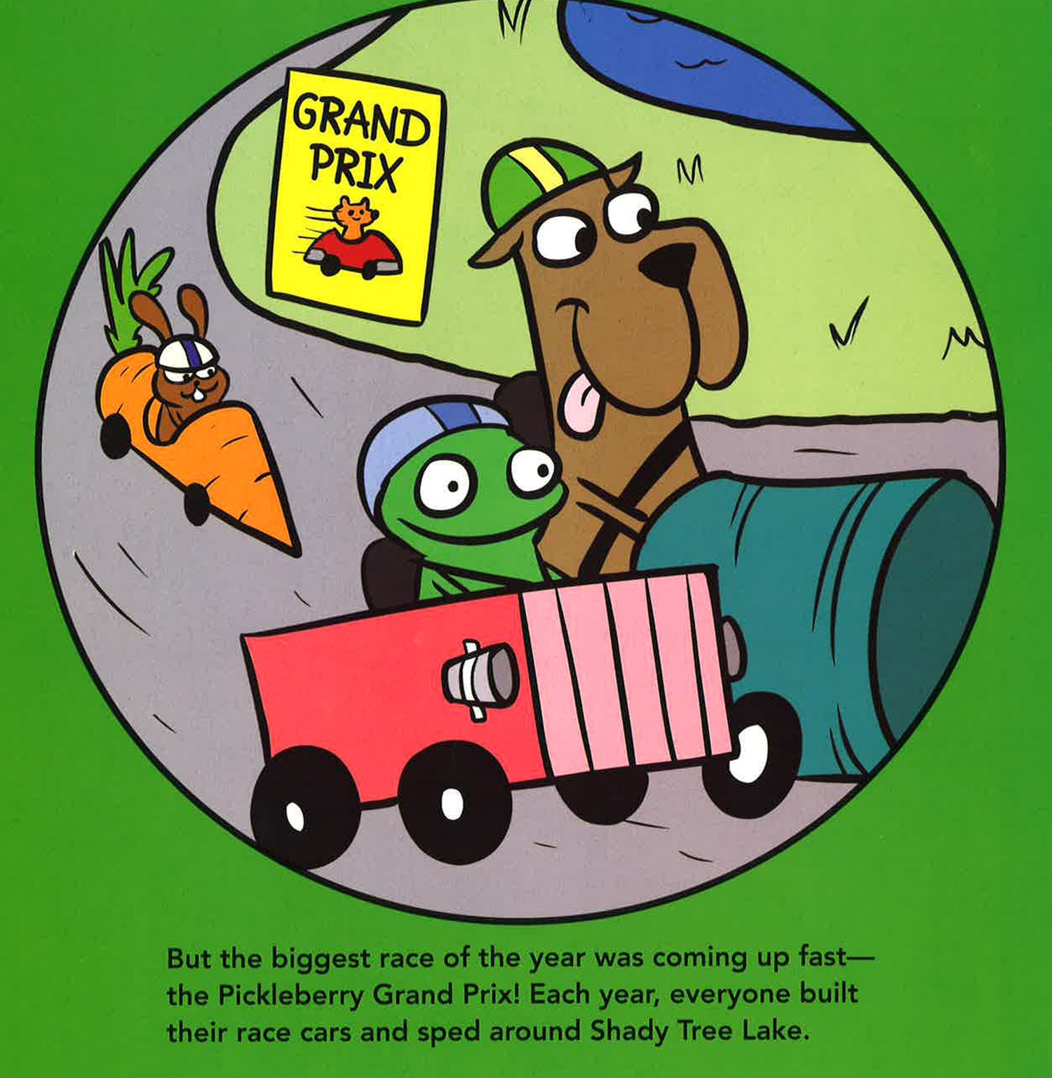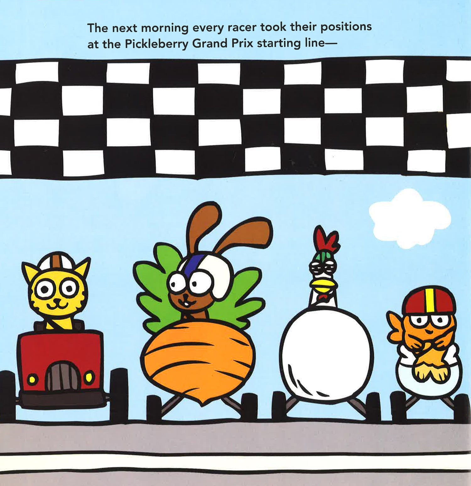 From the creator of Bear in Underwear! and Rawr! comes a silly and heartwarming story about a polite, but clumsy racecar driver who discovers that winning isn't everything. Meet Rod. He isn't the best racer in town. In fact, he's never even made it to the finish line. But that has never stopped him from competing each and every year in the local Grand Prix. And with the help of his friends, maybe this will be his year to shine! An adorable racing tale filled with heart, humor, and good sportsmanship, Hot Rod Hot Dog is a story about never giving up, being the best you can be, and ultimately learning that playing the game is just as important as winning. Plus, with a novelty turnwheel on the front cover, Hot Rod Hot Dog is a hands-on read!