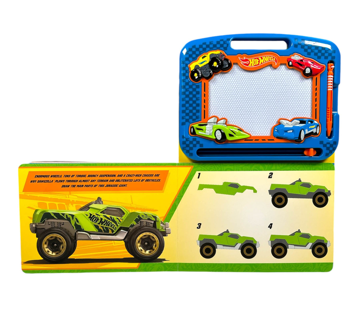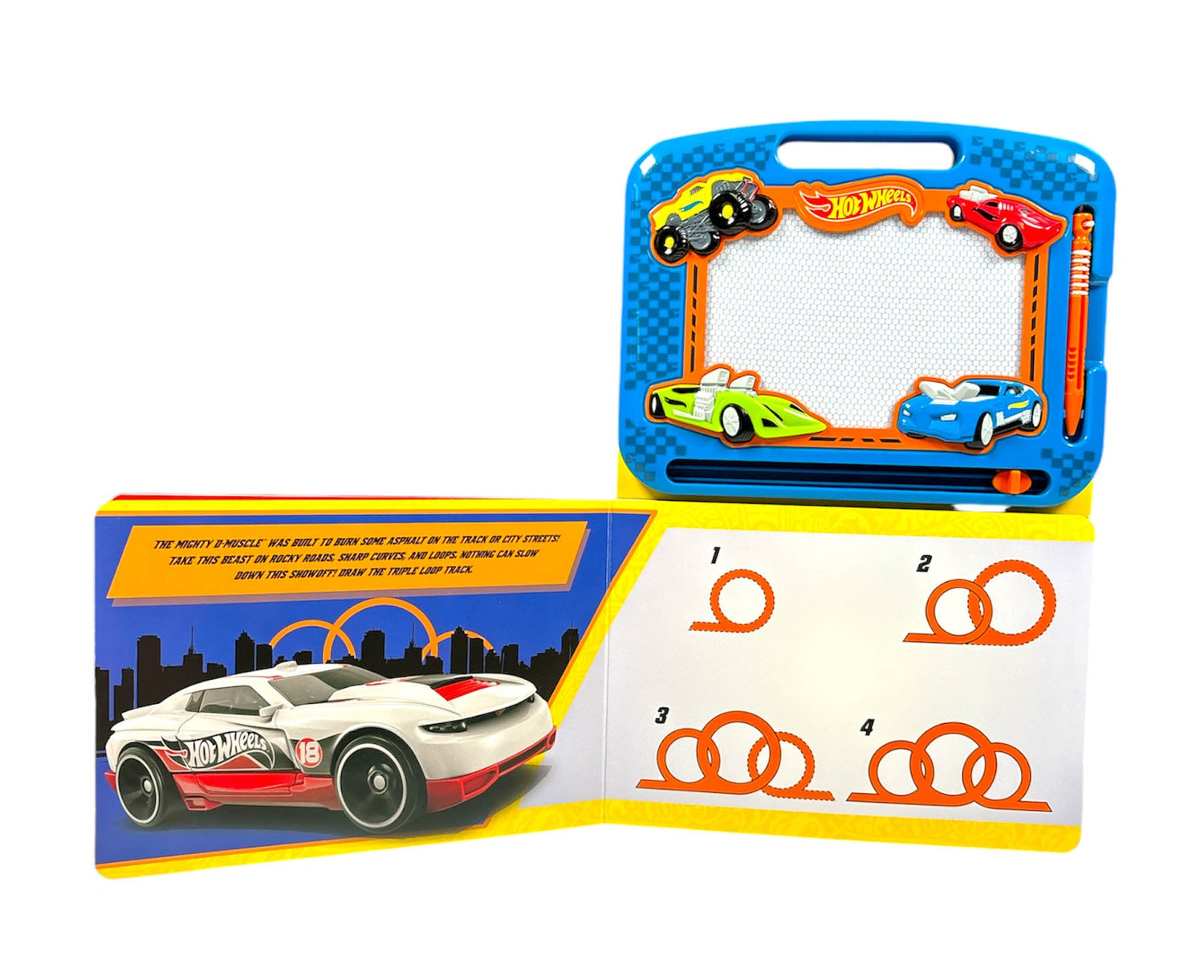 Join in the Hot Wheels excitement! Try your hand at drawing as you explore the world of high-speed adventure! The magnetic drawing pad is erasable, so you can enjoy the book again and again!