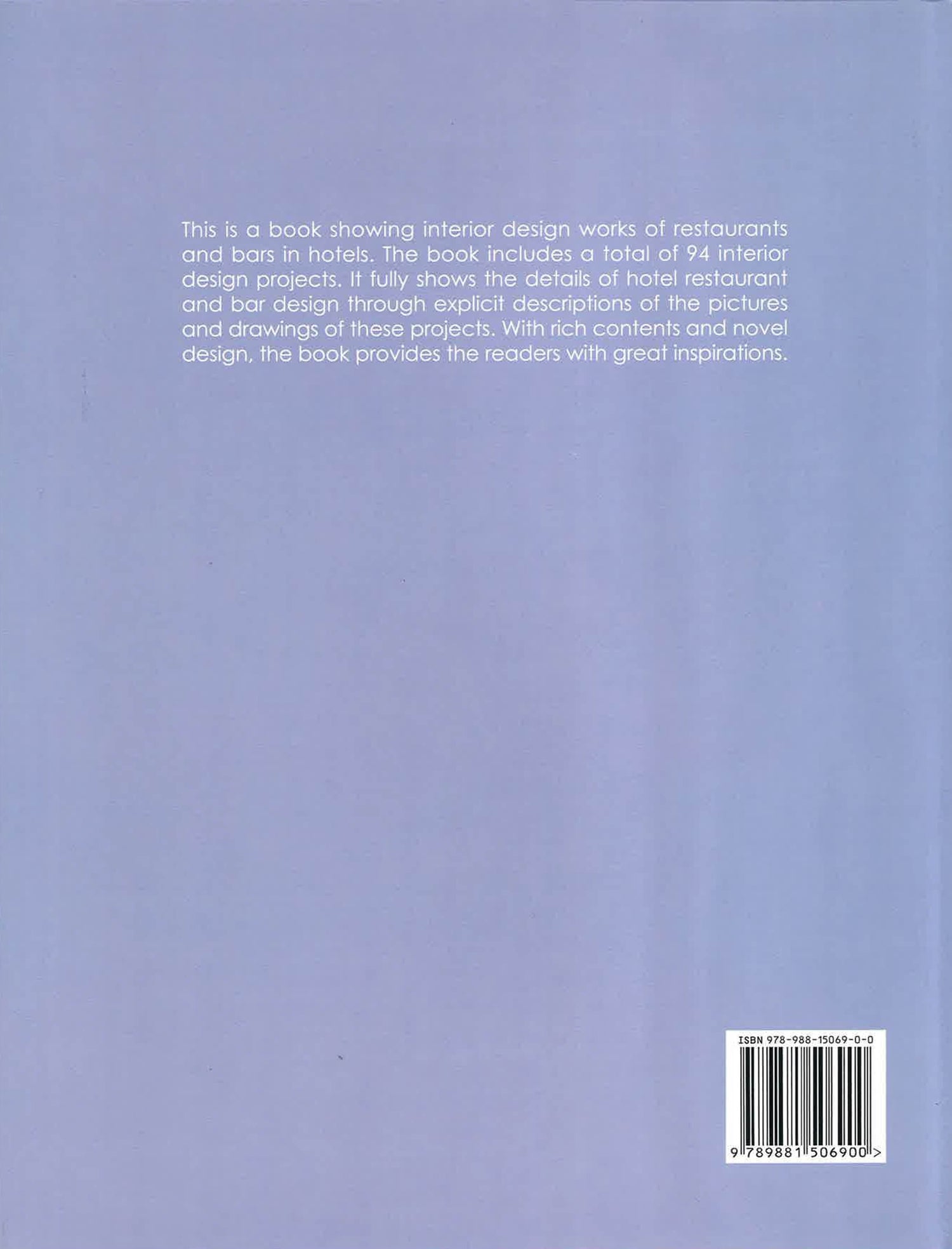 This is a book showing interior design works of restaurants and bars in hotels. The book includes a total of 94 interior design projects. It fully shows the details of hotel restaurant and bar design through explicit descriptions of the pictures and drawings of these projects. With rich contents and novel design, the book provides the readers with great inspirations.