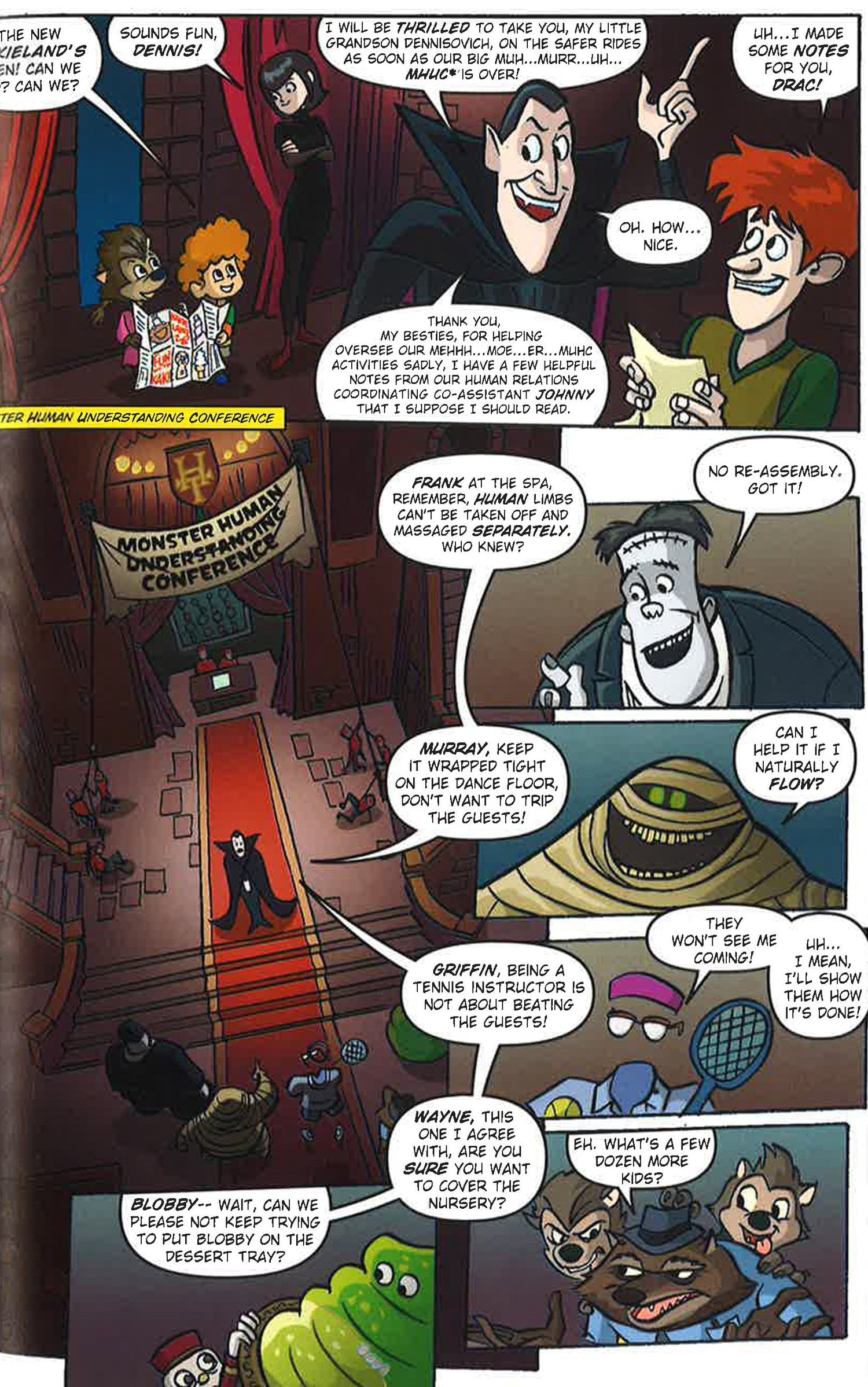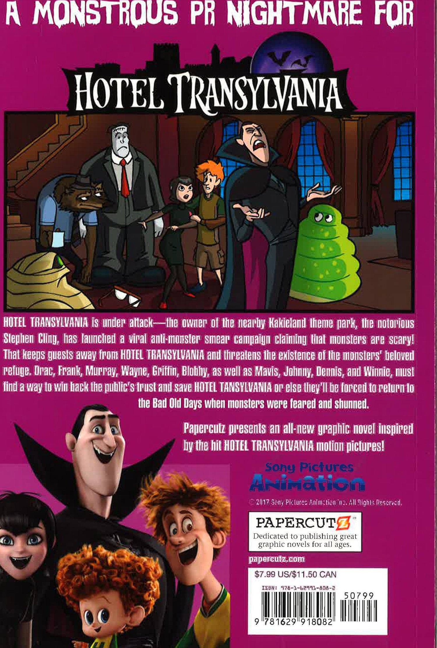 Papercutz presents an all-new graphic novel inspired by the hit Hotel Transylvania motion pictures!Hotel Transylvania is under attack - the owner of the nearby Kakieland theme park, the notorious Stephen Cling, has launched a viral anti-monster smear campaign claiming that monsters are scary! That keeps guests away from Hotel Transylvania and threatens the existence of the monster's beloved refuge. Drac, Frank, Murray, Wayne, Griffin, Blobby, as well as Mavis, Johnny, Dennis, and Winnie, must find a way to win back the public's trust and save Hotel Transylvania or else they'll be forced to return to the Bad Old Days when monsters were feared and shunned.