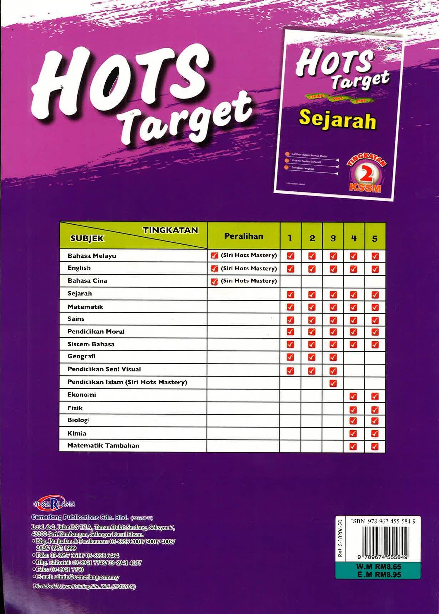Buku latihan Sejarah Tingkatan 2 yang diisi dengan latihan dalam bentuk modul dan juga praktis topikal intensif. Disertakan dengan jawapan yang lengkap. Memuatkan soalan kemahiran berfikir aras tinggi (KBAT), aplikasi i-Think dan DSKP.