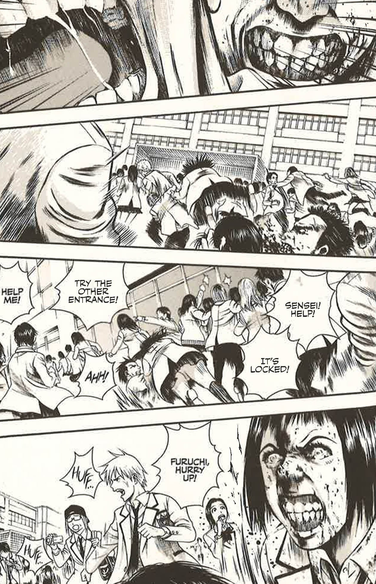 Hour of the Zombie is an all-new horror manga series set in high school that will appeal to fans of High School of the Dead and The Walking Dead. Each grisly volume of Hour of the Zombie contains colour inserts and graphically detailed illustrations of zombie carnage! Akira is your typical student living a conventional high school life. He has dreams and aspirations like everyone else, and an unrequited crush on his childhood friend, Kurumi. Unfortunately for him she seems more interested in Akira's best friend, Umezawa. And yet their innocent love triangle pales in comparison to what the three friends are about to experience, even if it may yet be their saving grace. Students are suddenly turning into frenzied zombies, attacking and gorging themselves upon each other's flesh. The school is being torn apart until suddenly...they stop. With the zombies apparently back to normal, the school is now divided between the previously turned and the unbitten. But how long will this peace last? And what caused students to turn in the first place? When any of your classmates could suddenly decide to have you for lunch, a friendly face can become the scariest thing in the room.