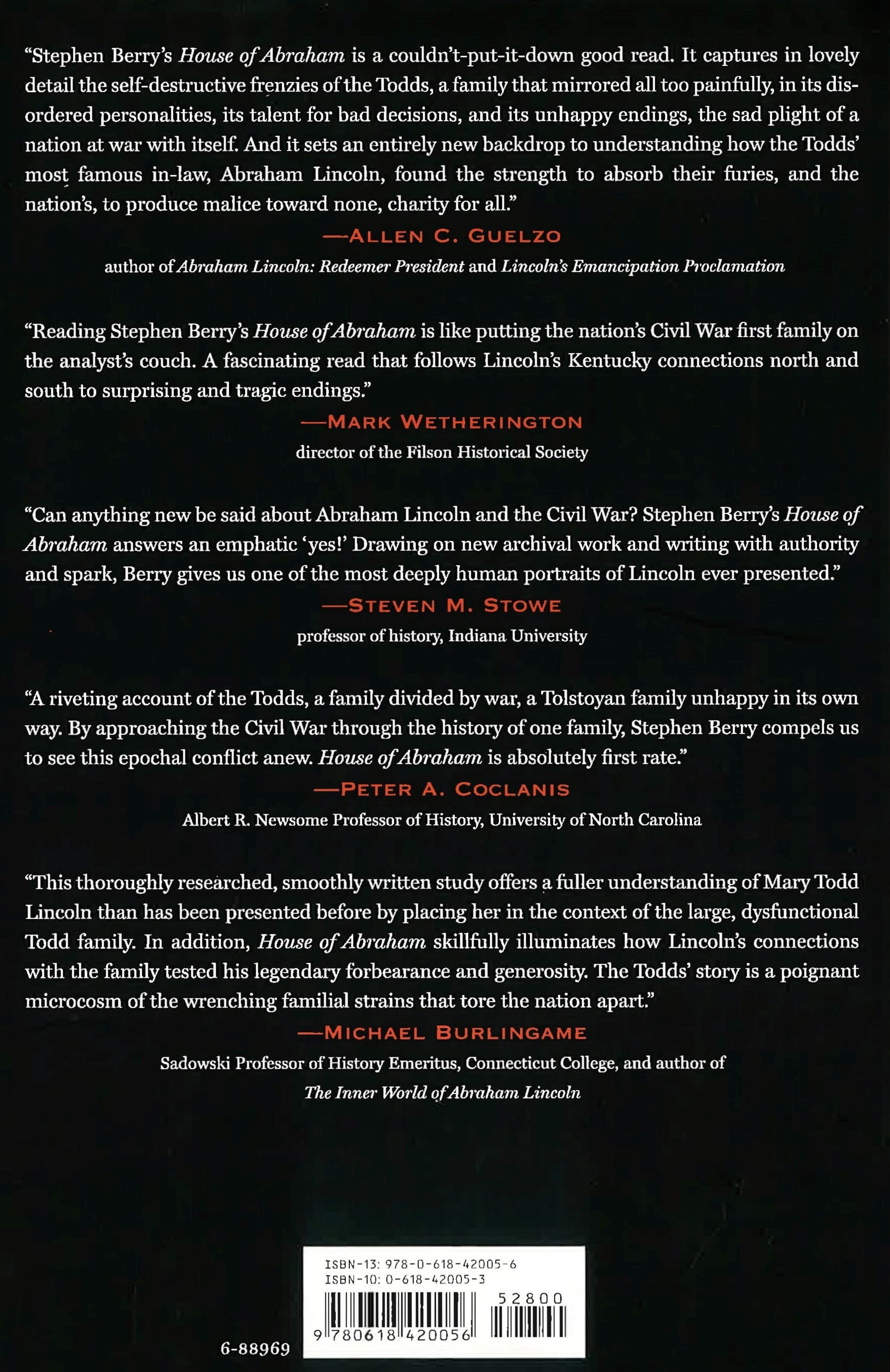 For all the talk of the CivilWar’s pitting brother against brother, no book has told fully the story of one family ravaged by that conflict. And no family better illustrates the personal toll the war took than Lincoln’s own.Mary Todd Lincoln was one of fourteen siblings who were split between the Confederacy and the Union.Three of her brothers fought, and two died, for the South. Several Toddsincluding Mary herselfbedeviled Lincoln’s administration with their scandalous behavior.Their struggles haunted the president and moved him to avoid tactics or rhetoric that would dehumanize or scapegoat the Confederates. By drawing on his own familial experience, Lincoln was able to articulate a humanistic, even charitable view of the enemy that seems surpassingly wise in our time, let alone his. In House of Abraham, the award-winning historian Stephen Berry fills a gap in CivilWar history, showing how the war changed one family and how that family changed the course of the war