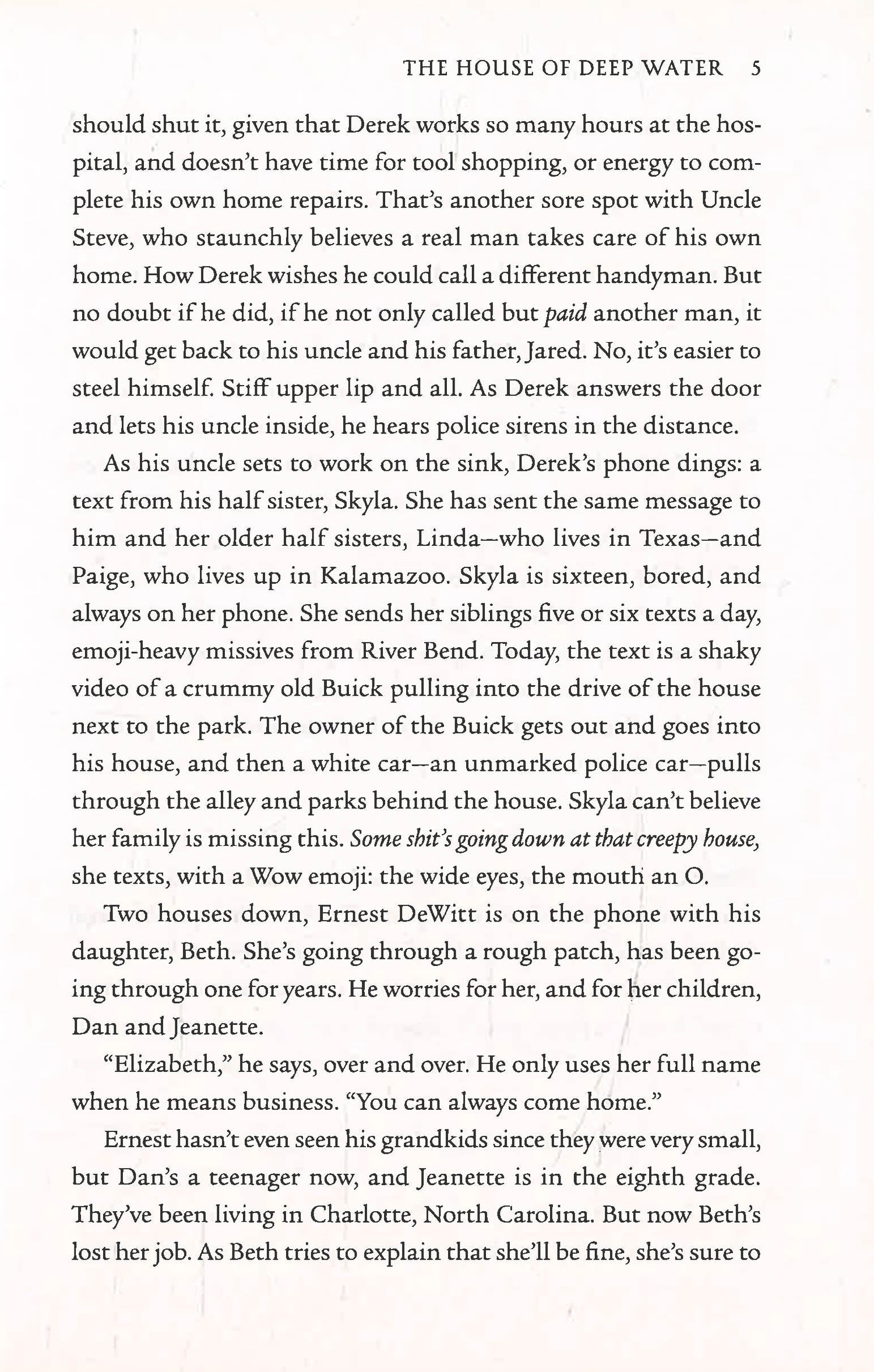 Uniting the voices of mothers and daughters, husbands, lovers, and fathers, this unforgettable debut novel offers both a compulsively readable family story and a riveting portrait of small-town America today. With wisdom, humor, and exceptional heart, The House of Deep Water explores motherhood, trauma, love, loss, and new beginnings found in that most unlikely place: home.