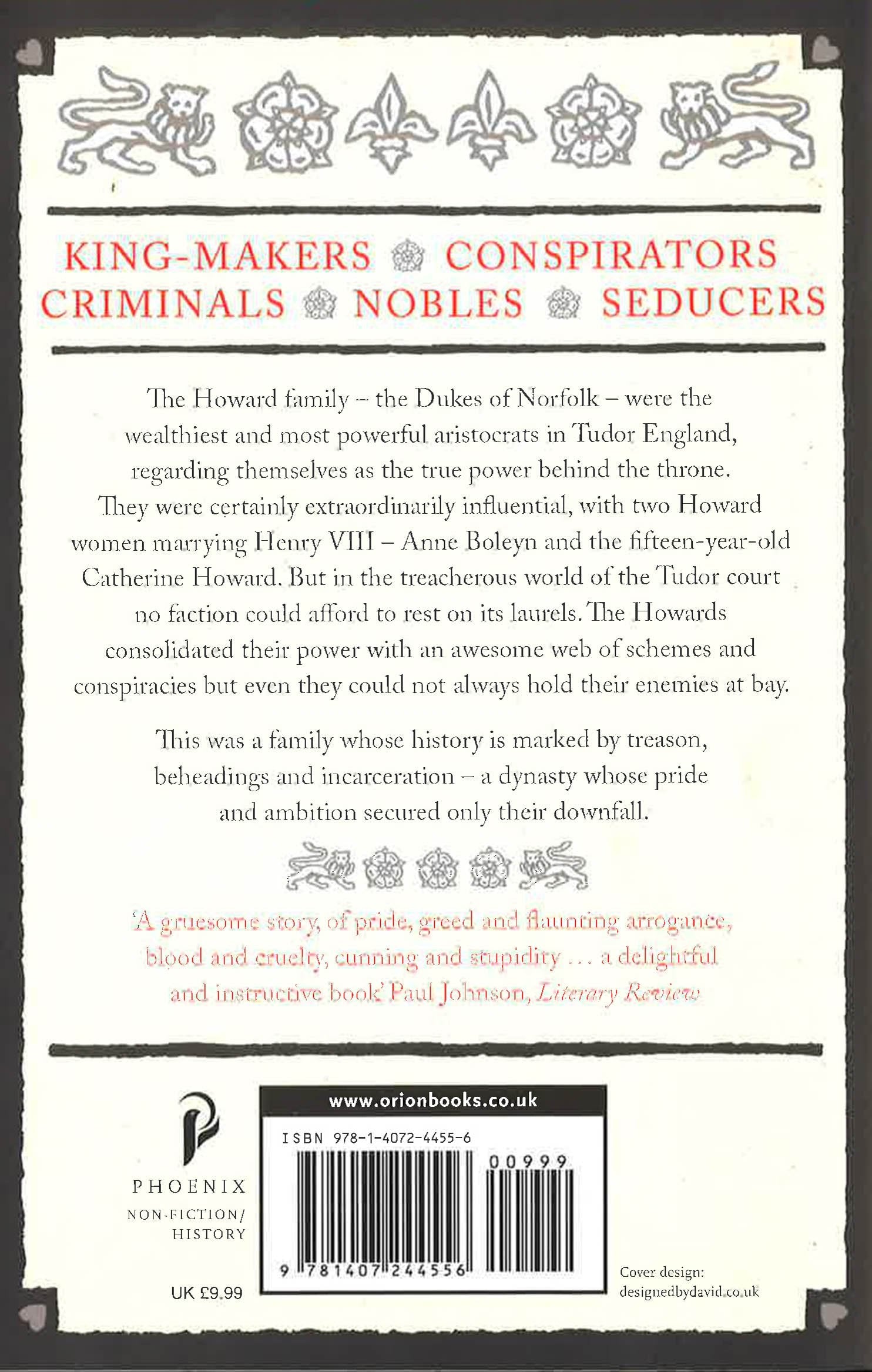 The Howard family - the Dukes of Norfolk - were the wealthiest and most powerful aristocrats in Tudor England, regarding themselves as the true power behind the throne. They were certainly extraordinarily influential, with two Howard women marrying Henry VIII - Anne Boleyn and the fifteen-year-old Catherine Howard. But in the treacherous world of the Tudor court no faction could afford to rest on its laurels. The Howards consolidated their power with an awesome web of schemes and conspiracies but even they could not always hold their enemies at bay. This was a family whose history is marked by treason, beheadings and incarceration - a dynasty whose pride and ambition secured only their downfall.