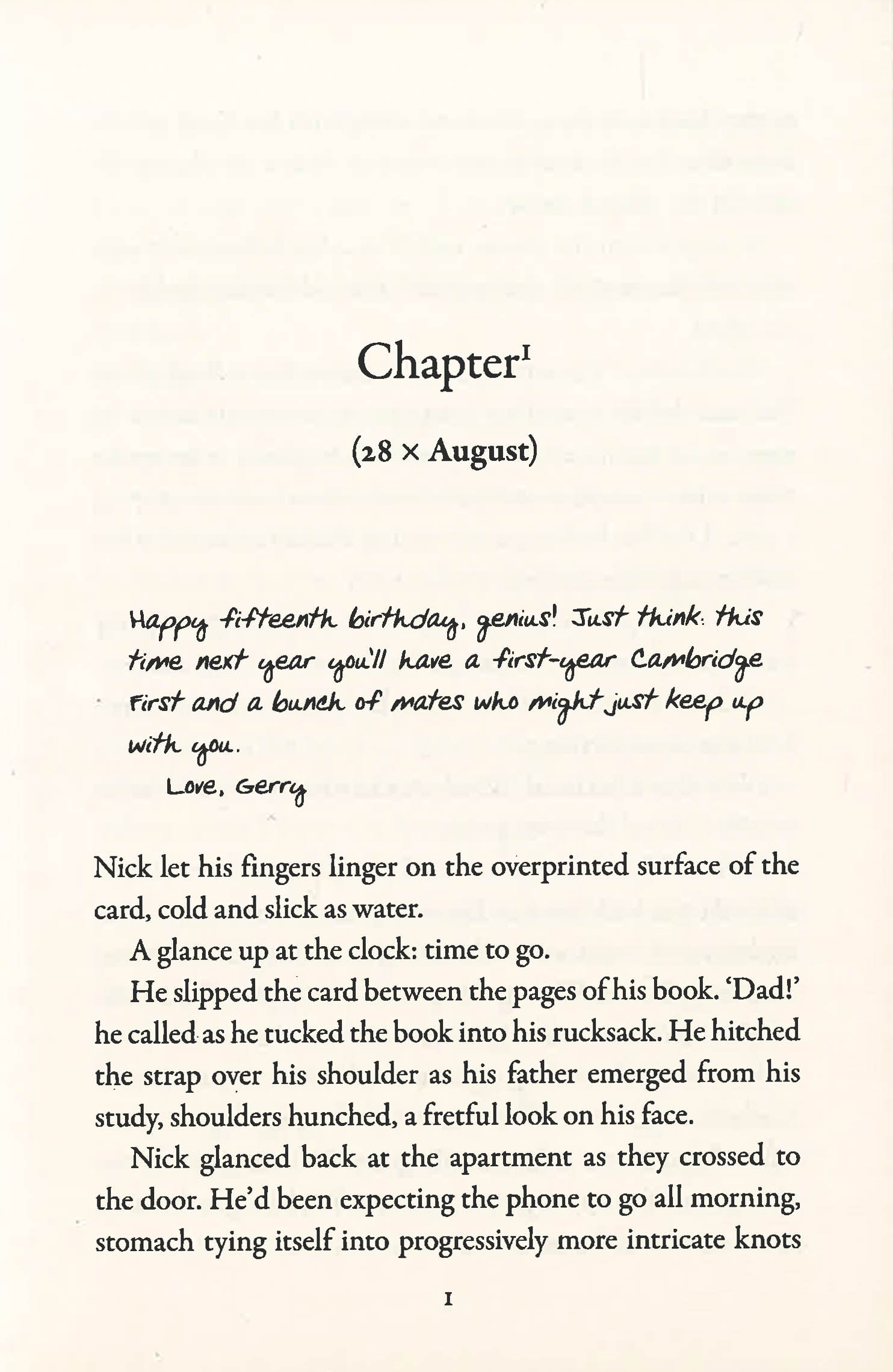 Nick hates it when people call him a genius. Sure, he's going to Cambridge University aged 15, but he says that's just because he works hard. And, secretly, he only works hard to get some kind of attention from his workaholic father. Not that his strategy is working. When he arrives at Cambridge, he finds the work hard and socialising even harder. Until, that is, he starts to cox for the college rowing crew and all hell breaks loose...