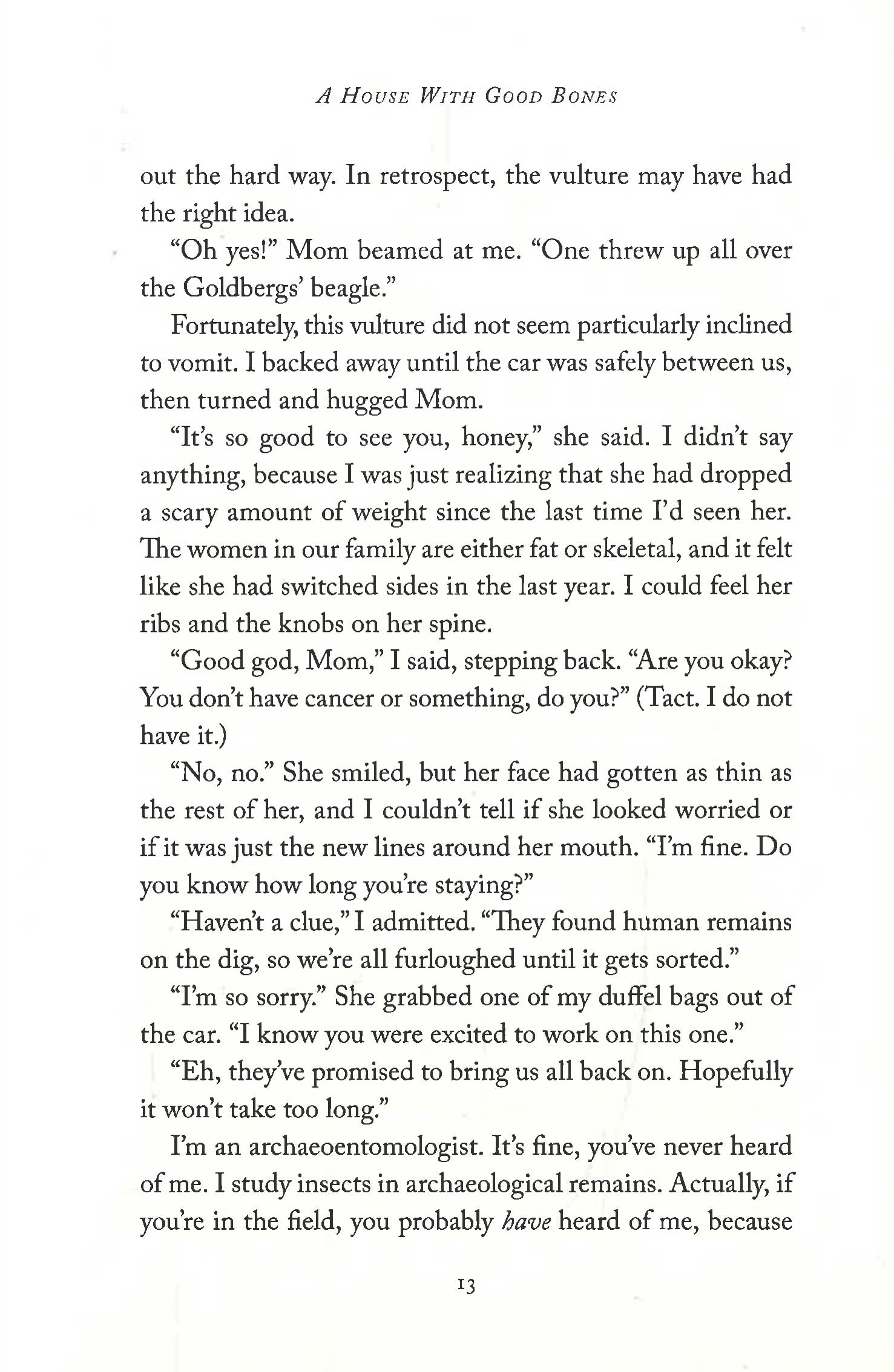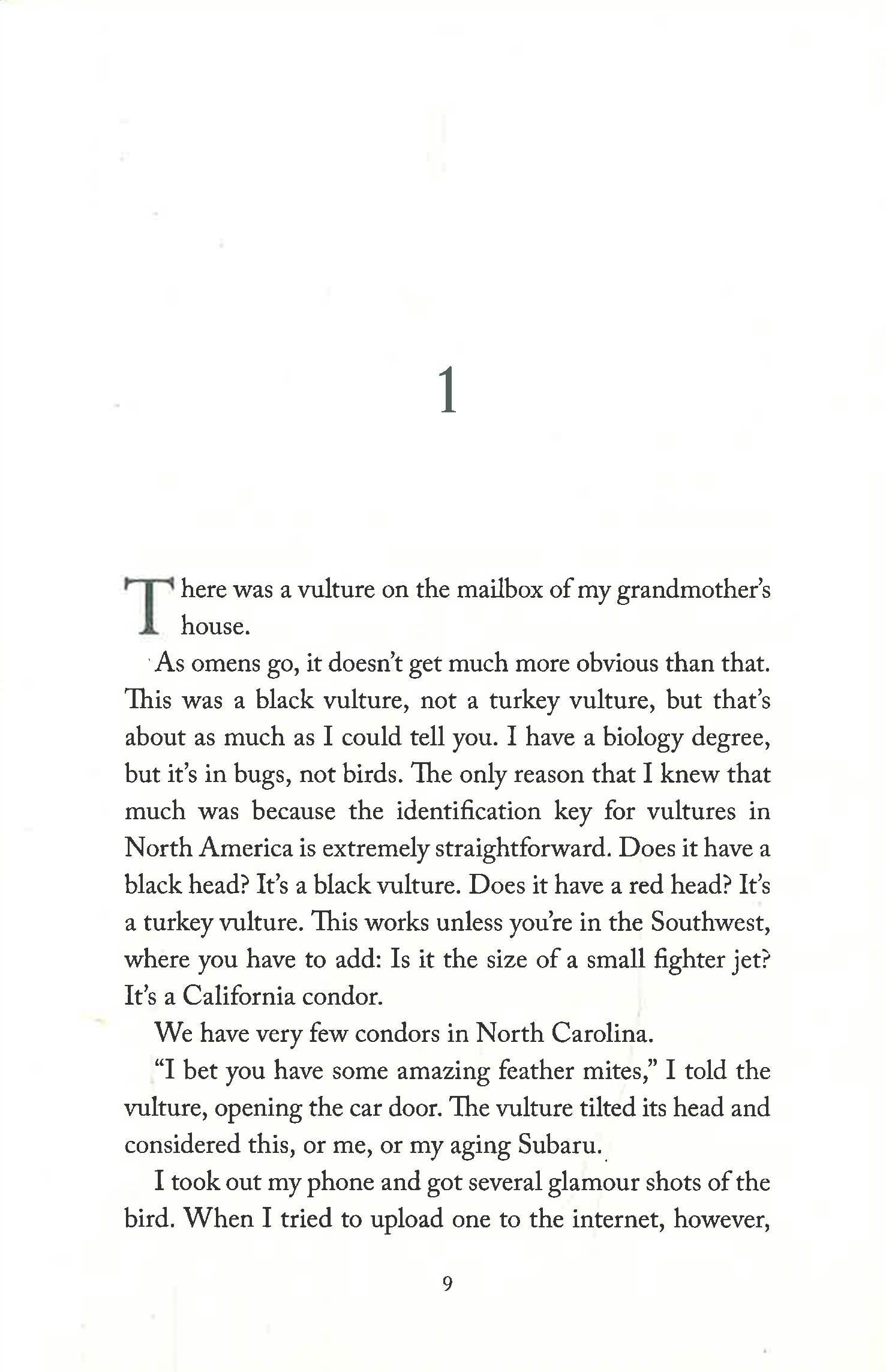 Samantha Montgomery pulls into the driveway of her family home to find a massive black vulture perched on the mailbox, staring at the house.