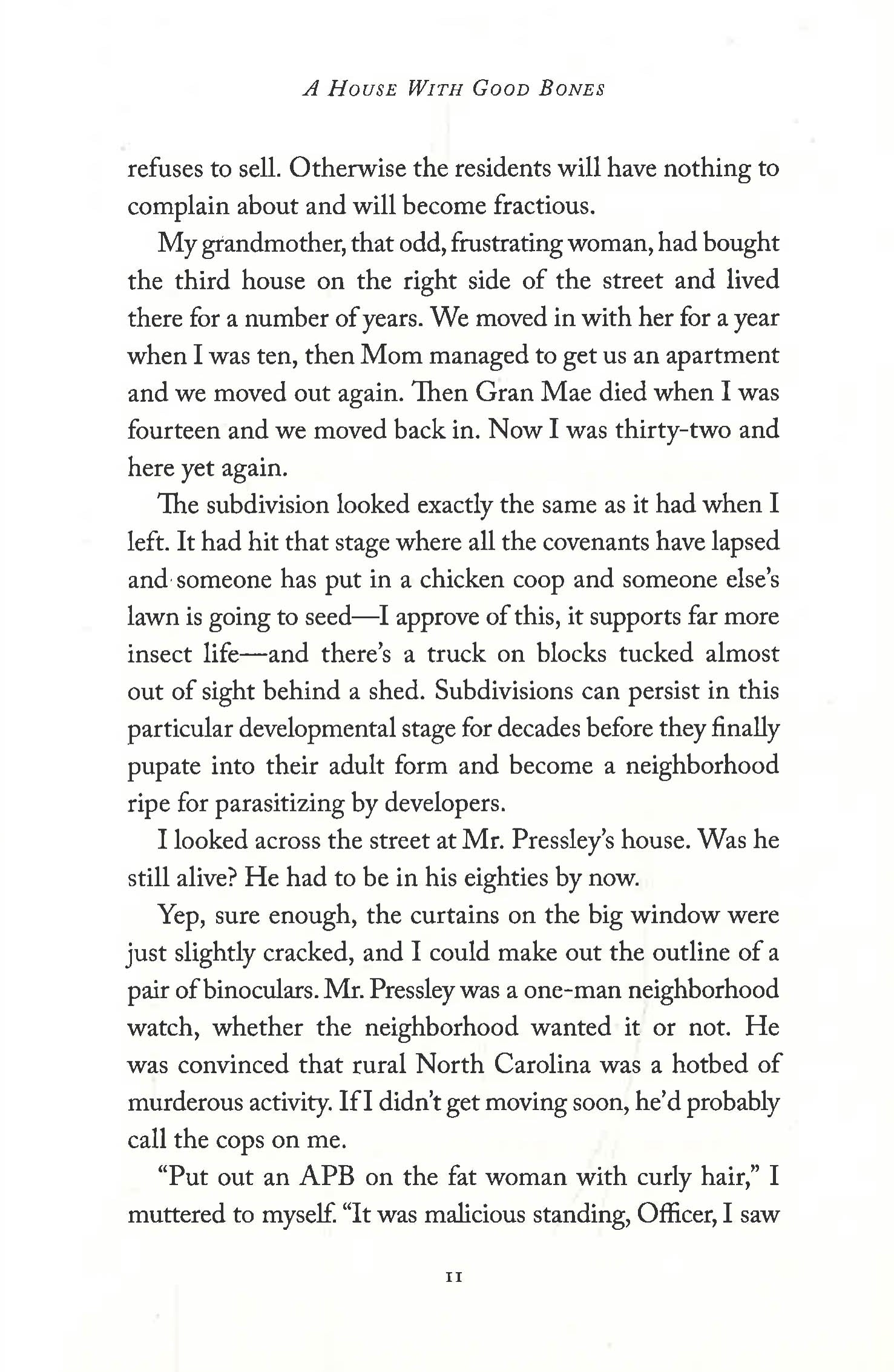 Inside, everything has changed. Gone is the eclectic warmth Sam expects; instead the walls are a sterile white. Now, it’s very important to say grace before dinner, and her mother won’t hear a word against Sam’s long-dead and little-missed grandmother, who was the first to put down roots in this small southern town.