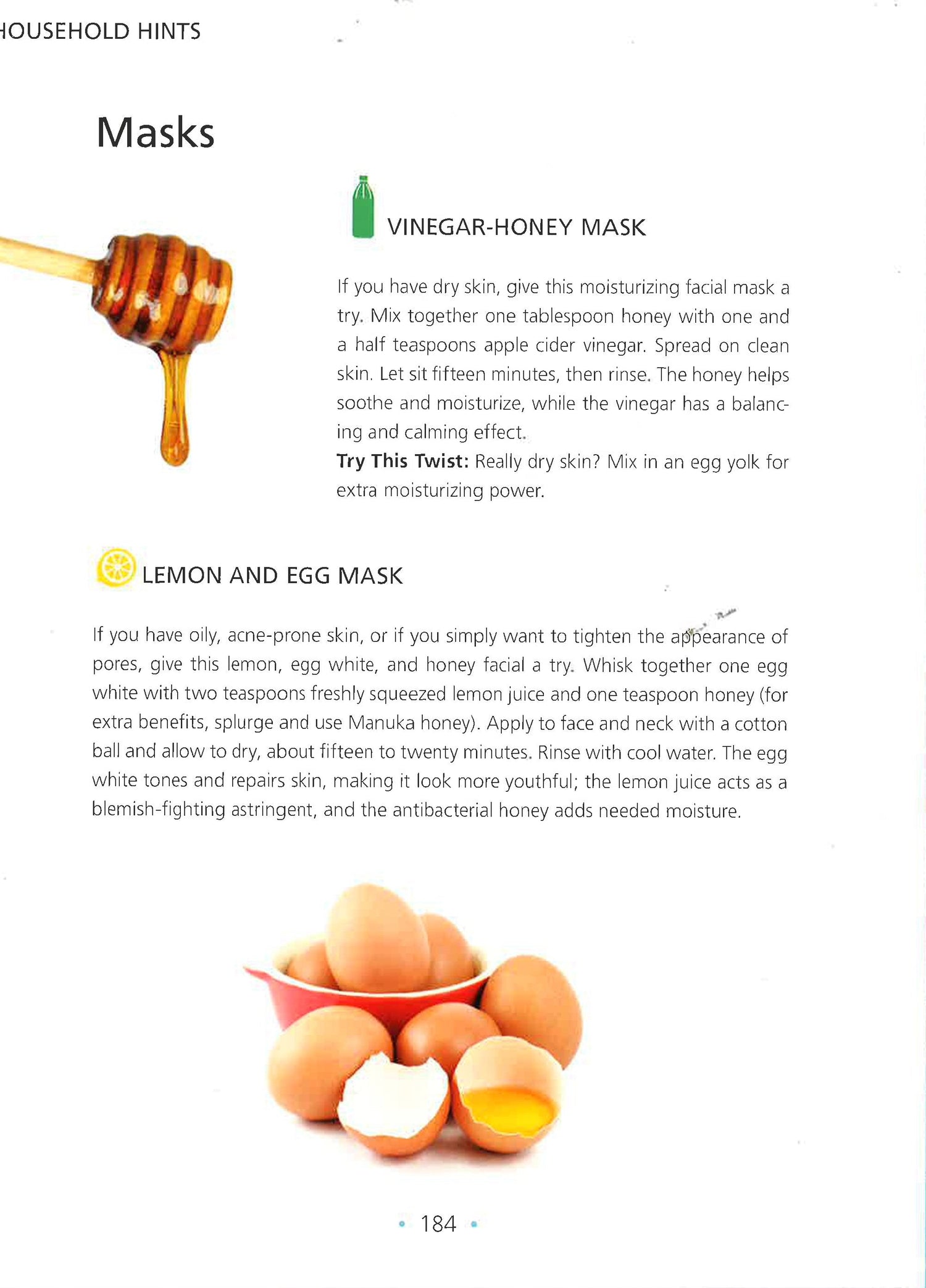 Discover simple, natural, and effective home products you can count on. Trying to avoid all those harmful chemicals in your home and looking for natural solutions? Household Hints has hundreds of fresh, safe, and effective tips, techniques, and recipes--and many are made from the wholesome ingredients already in your kitchen and garden. Inside you'll learn how to make cleaning solutions, scrubs, pet tips, natural pest control, gardening, yard, and even beauty care. These recipes and tips for the home are organized by use for ease. With these ingredients you can do almost anything; the possibilities are limitless!