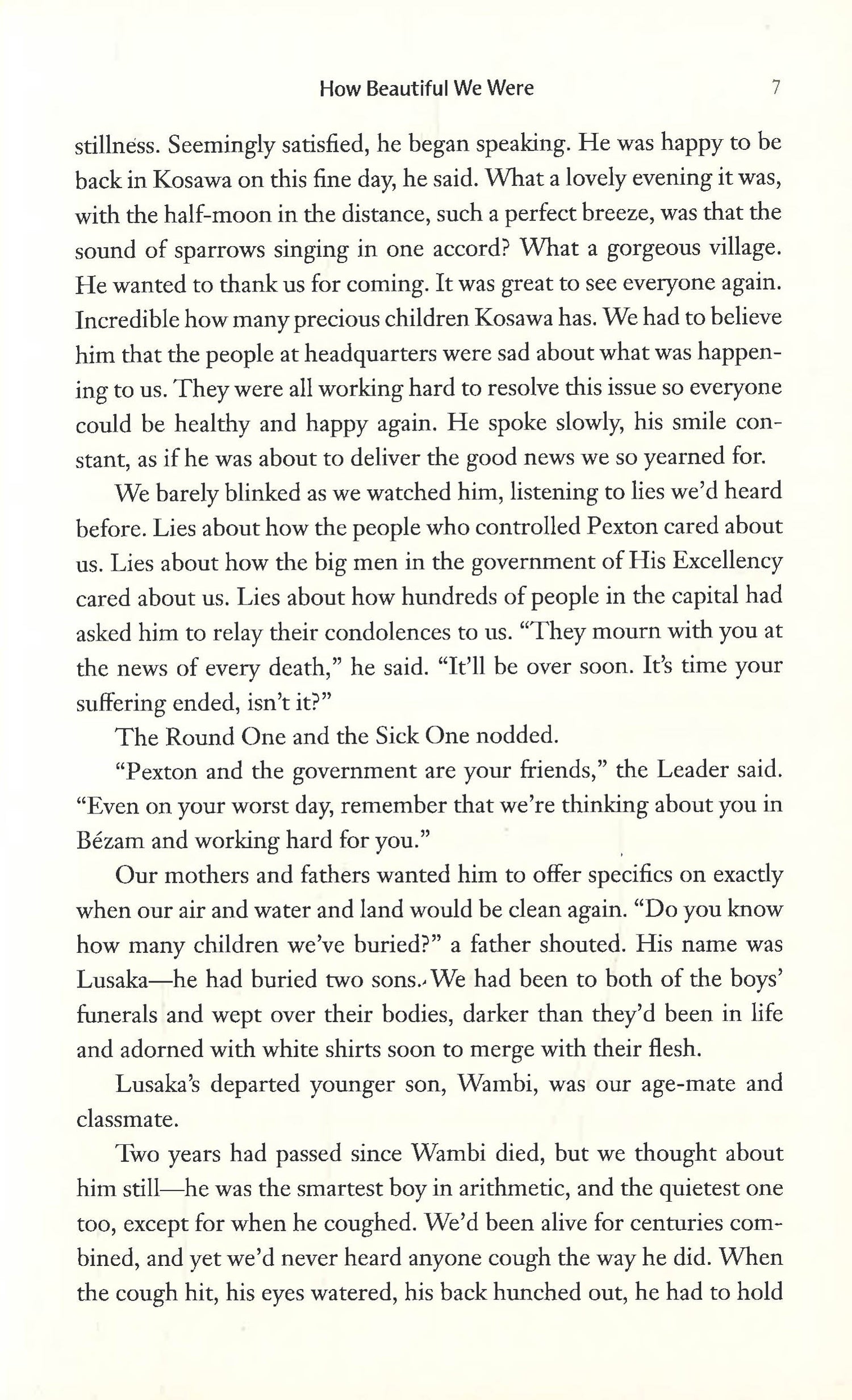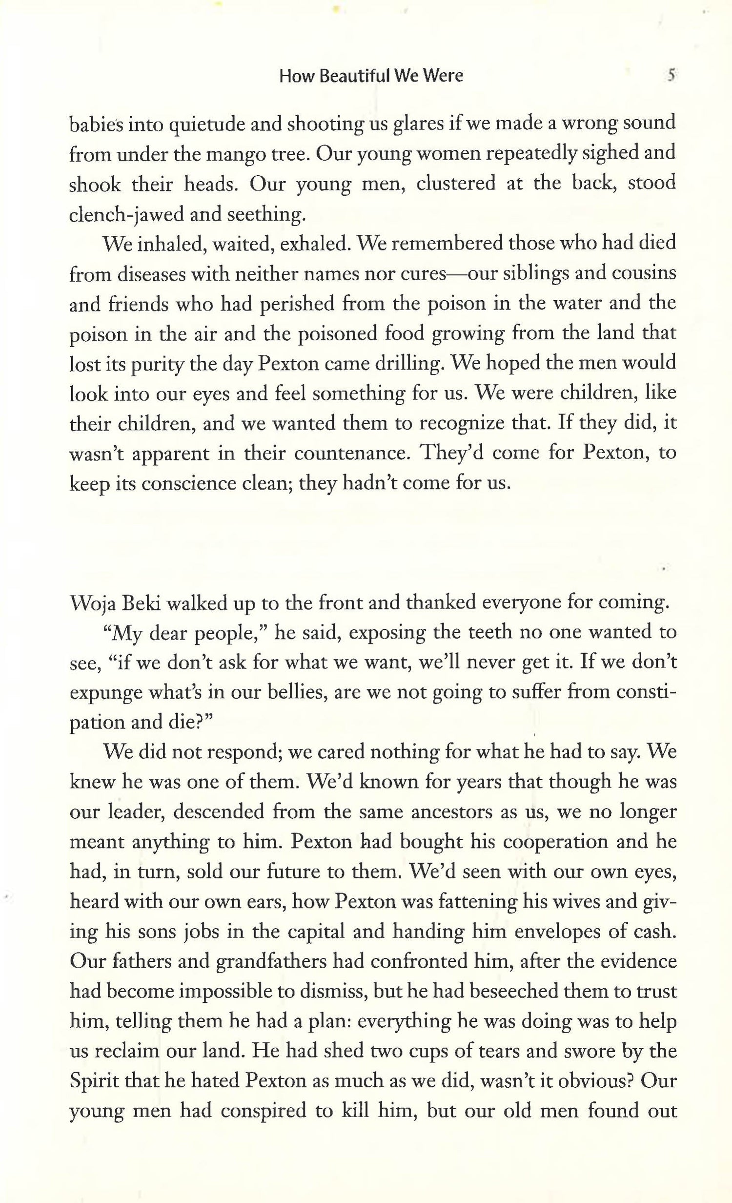 Sweeping and quietly devastating' New York Times'A David and Goliath story for our times' O, the Oprah MagazineSet in the fictional African village of Kosawa, How Beautiful We Were tells the story of a people living in fear amidst environmental degradation wrought by an American oil company. Pipeline spills have rendered farmlands infertile. Children are dying from drinking toxic water. Promises of clean-up and financial reparations are made - and ignored. The country's government, led by a brazen dictator, exists to serve its own interest only. Left with few choices, the people of Kosawa decide to fight back. But their fight will come at a steep price . . . one which generation after generation will have to pay.Told through the perspective of a generation of children and the family of a girl named Thula, How Beautiful We Were is a masterful exploration of what happens when the reckless drive for profit, coupled with the ghost of colonialism, comes up against one community's determination to hold onto its ancestral land and a young woman's willingness to sacrifice everything for the sake of her people's freedom.
