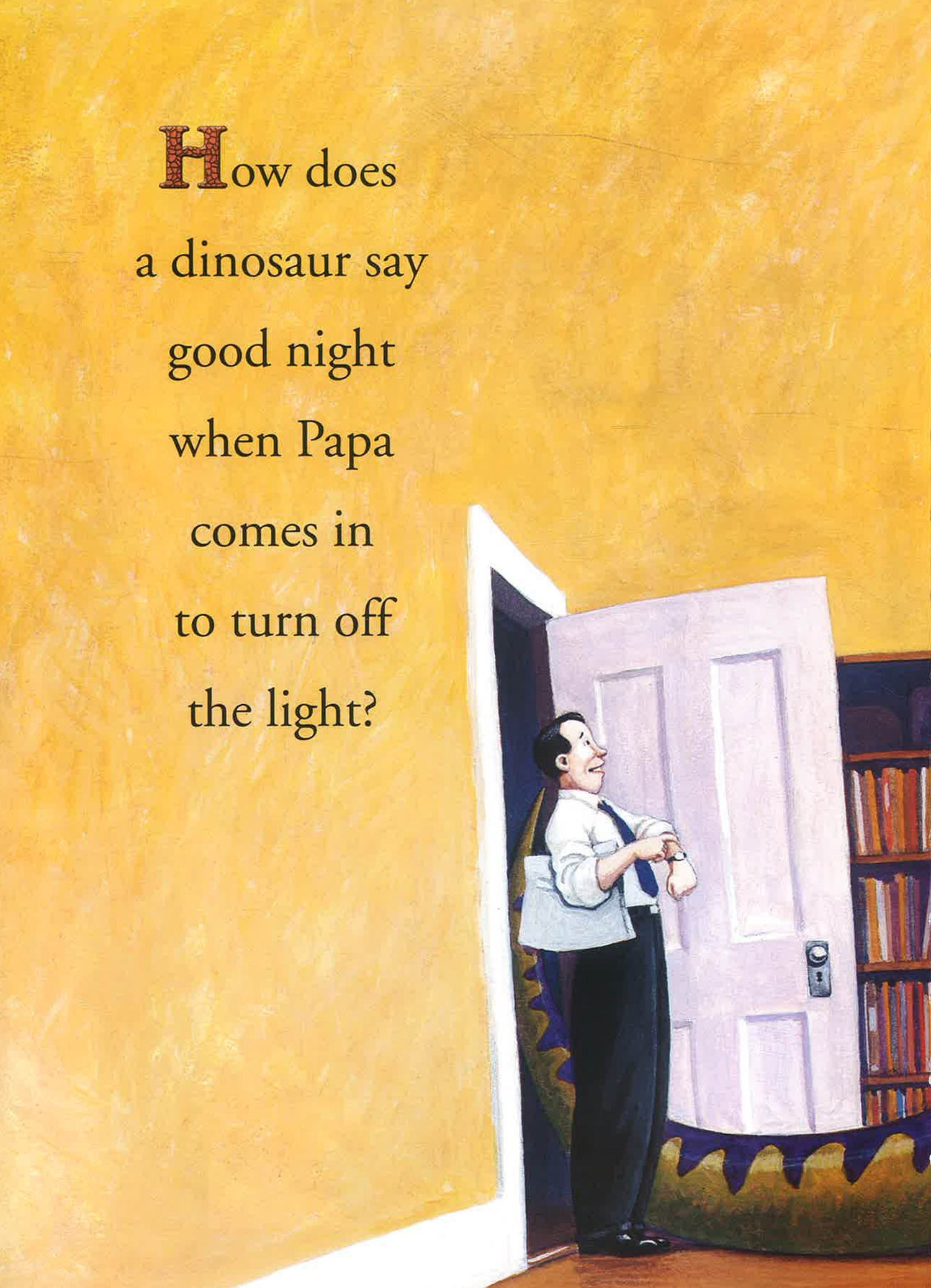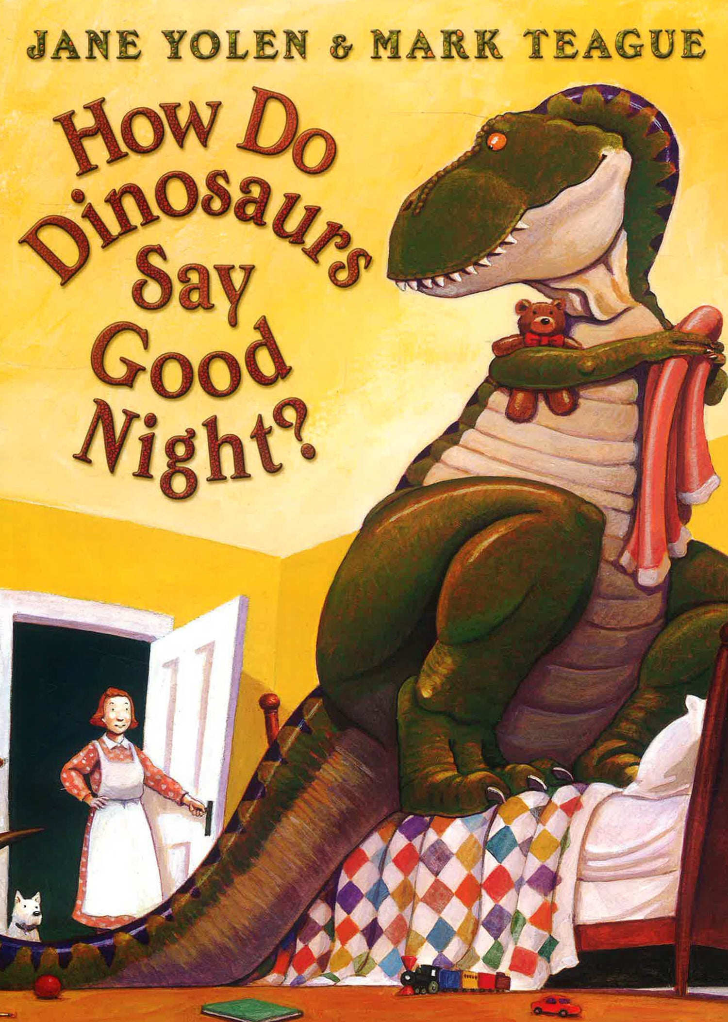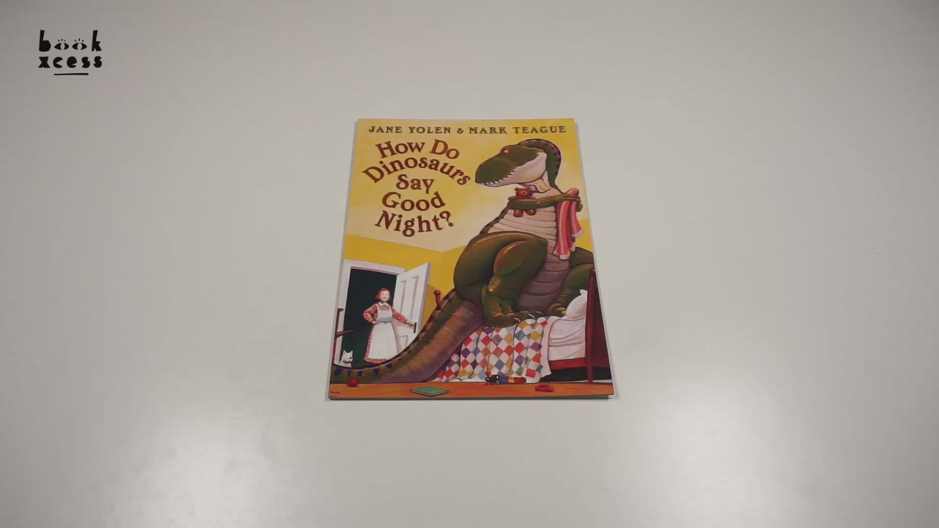 A playful peek into the homes of dinosaur babies and their parents at bedtime. 'How does a dinosaur say good night when Papa comes in to turn off the light? Does a dinosaur slam his tail and pout? Does he throw his teddy bear all about?'