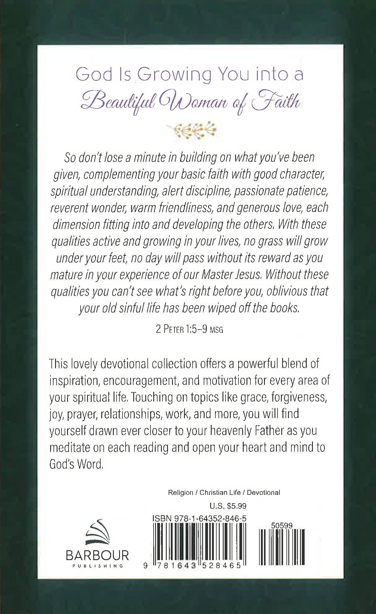 How God Grows a Woman of Faith is a devotionaldesigned to enhance your spiritual journey. Featuring more than 200 devotional readings complemented by scripture selections and prayers, this lovely collection offers a powerful blend of inspiration, encouragement, and motivation for every area of your spiritual life. Touching on topics like grace, forgiveness, joy, prayer, relationships, work, and more, you will find yourself drawn ever closer to your heavenly Father as you meditate on each reading and open your heart and mind to God's Word.