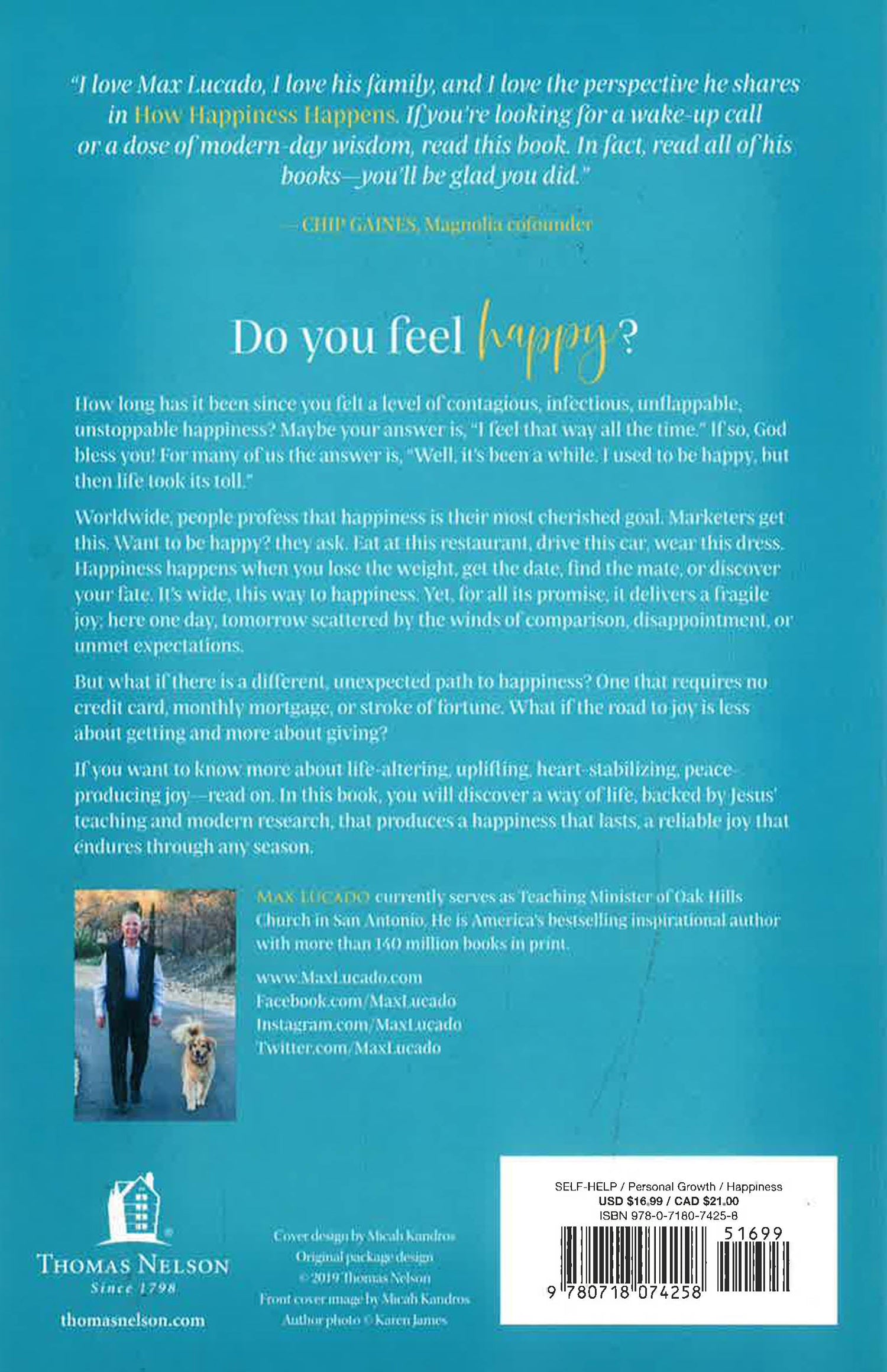 In How Happiness Happens, Max Lucado shares the unexpected path to a lasting happiness, one that produces reliable joy amidst any life circumstance. Based on the teachings of Jesus and backed by modern research, this book presents a surprising but practical way of living that will change you from the inside out.