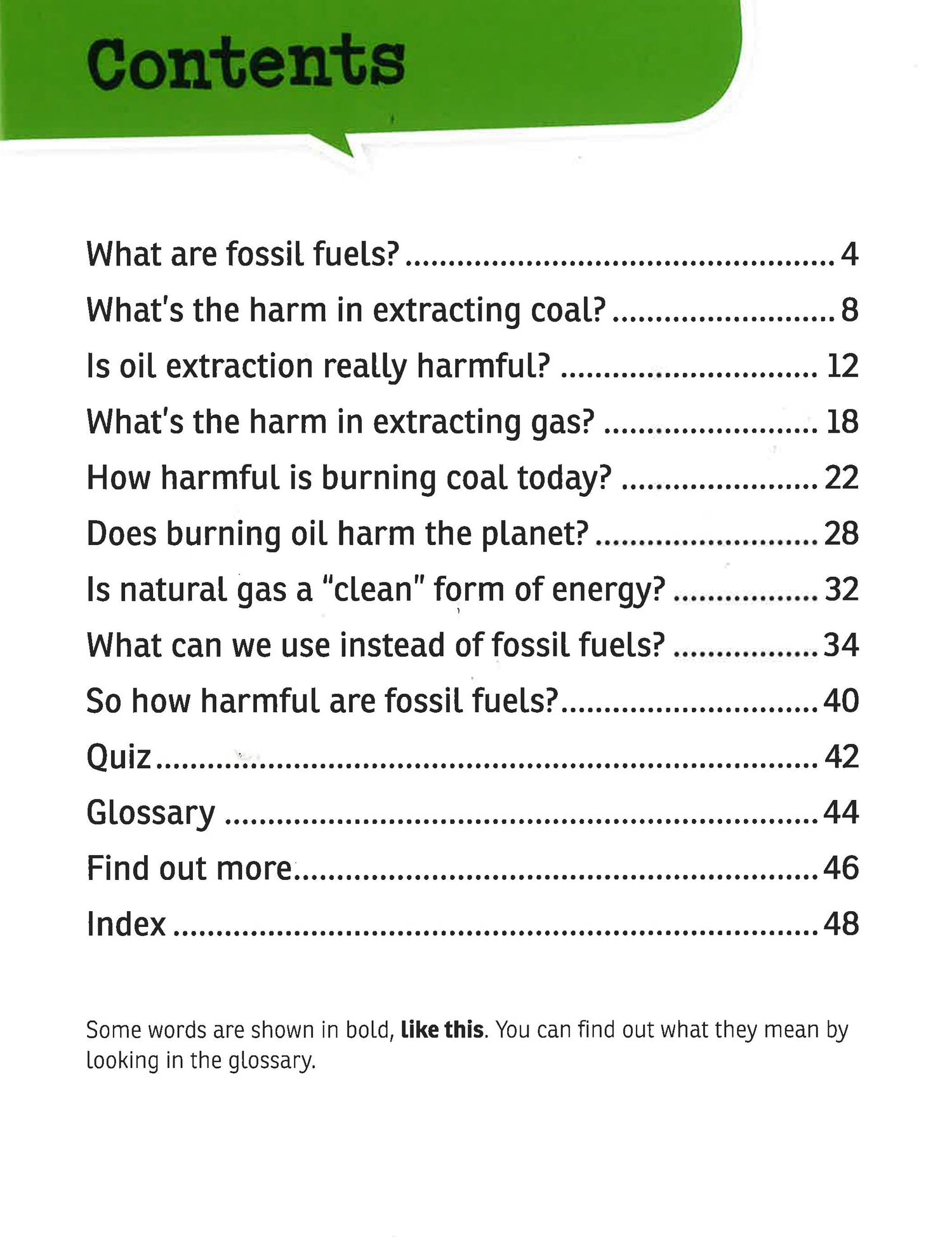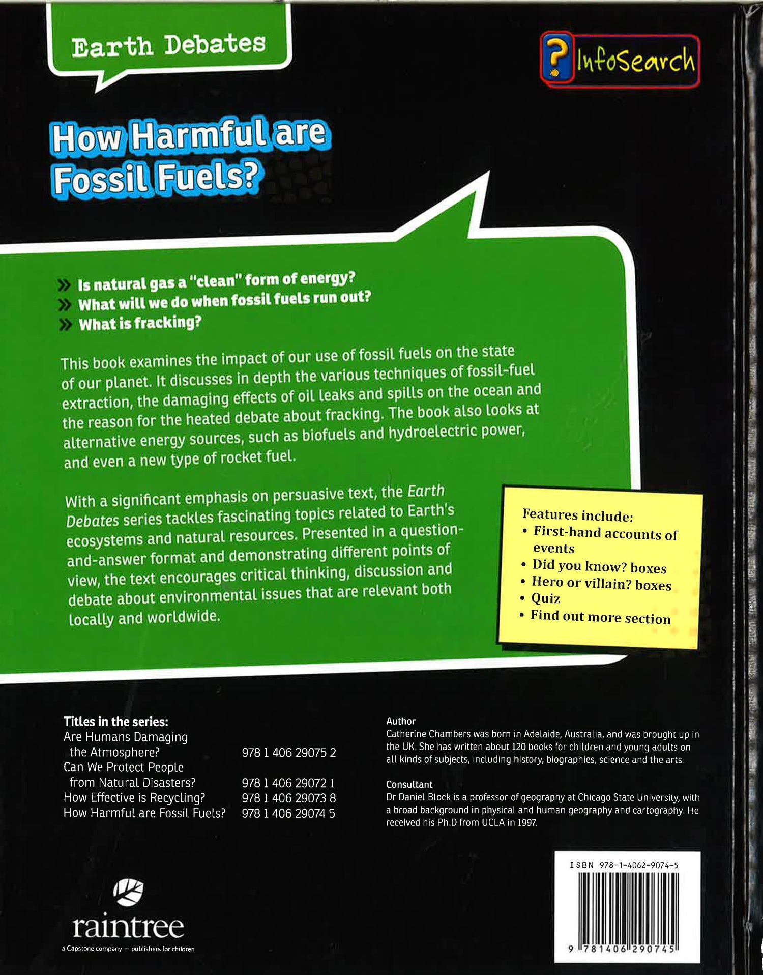 Is burning coal still harmful today? What is fracking? What do we do when fossil fuels run out? This book looks at the potentially harmful implications on the state of our planet from the use of fossil fuels, discussing in depth the various techniques of fossil fuel extraction such as longwall mining for coal, the major effects of oil leaks and spills on the ocean and the reason for the heated debate about fracking. The book also looks at alternative energy sources such as biofuels, hydroelectric power and even a new type of rocket fuel.
