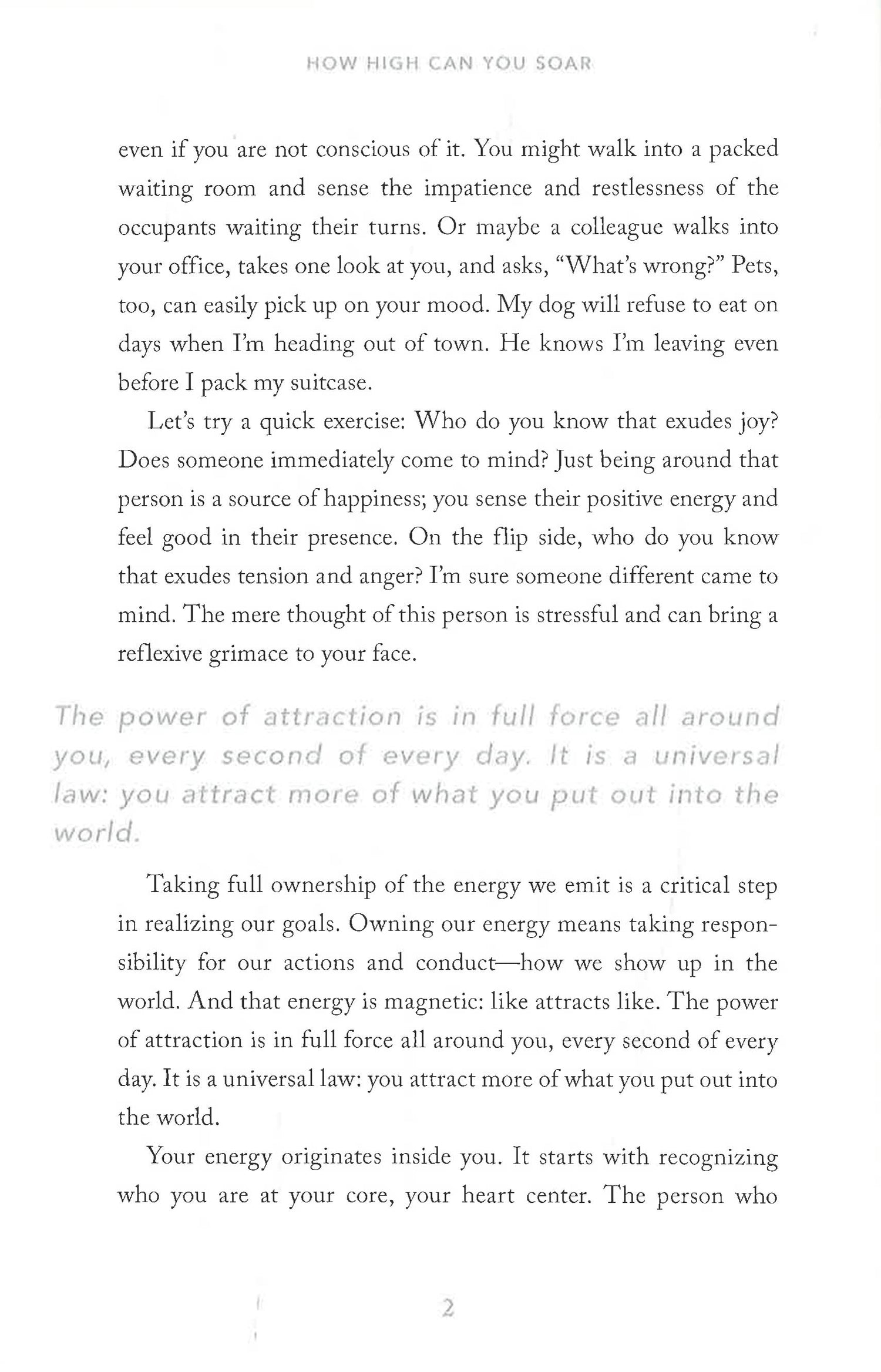 In How High Can You Soar, award-winning designer and CEO Jennifer Adams provides eight practical steps that will help readers harness their own power to manifest their biggest dreams. How High Can You Soar also includes stories of highly successful individuals who have achieved their goals by using these same practical tips.